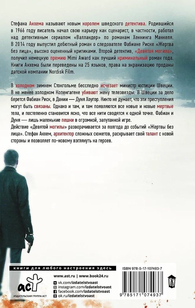 Действие «Девятой могилы» разворачивается за полгода до событий «Жертвы без лица». Стефан Анхем, архитектор сложных сюжетов, раскрывает свой талант с новой стороны и позволяет по-новому взглянуть на героев.