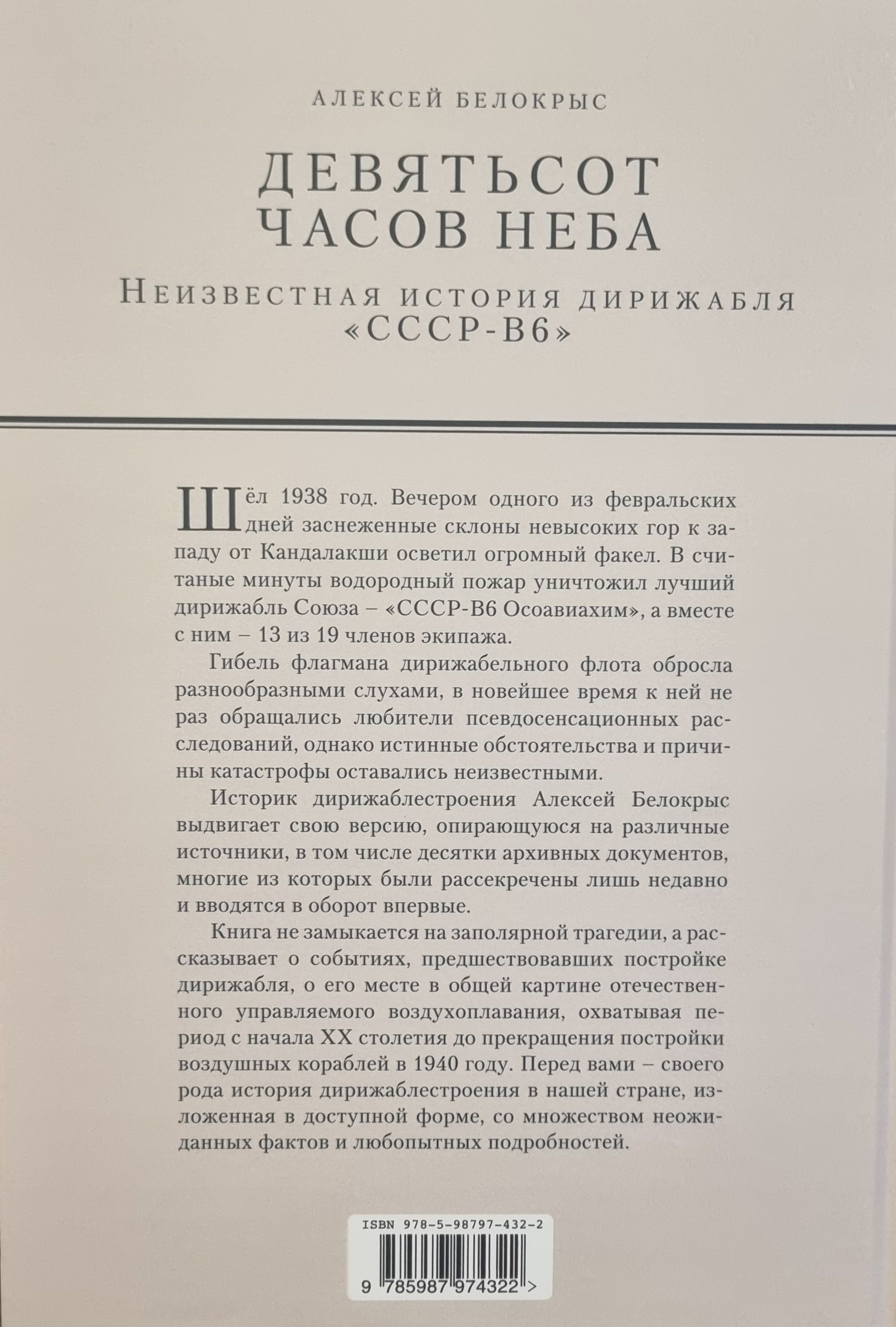 Книга не замыкается на заполярной трагедии, а рассказывает о событиях, предшествовавших постройке дирижабля, о его месте в общей картине отечественного управляемого воздухоплавания, охватывая период с начала ХХ столетия до прекращения постройки воздушных кораблей в 1940 году.