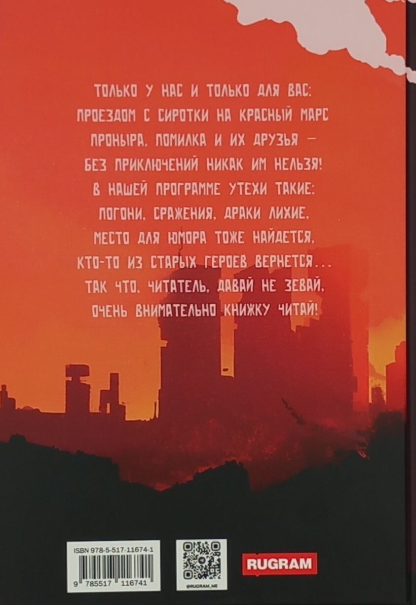 Только у нас и только для вас: Проездом с Сиротки на красный Марс Проныра, Помилка и их друзья – Без приключений никак им нельзя! В нашей программе утехи такие: Погони, сражения, драки лихие, Место для юмора тоже найдется, Кто-то из старых героев вернется… Так что, читатель, давай не зевай, Очень внимательно книжку читай!