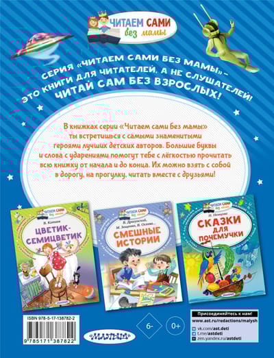 В книгу вошли фантастические рассказы Кира Булычёва про непоседливую и любознательную девочку Алису Селезнёву. Вместе с ней дети познакомятся с настоящим динозавром, прогуляются по Марсу и даже отправятся в прошлое! Смешные и поучительные истории научат честности, дружелюбию и взаимопомощи. А яркие космические пейзажи и забавные существа обогатят воображение. Крупные буквы и ударения помогут ребятам самостоятельно прочитать любимые многими поколениями истории.