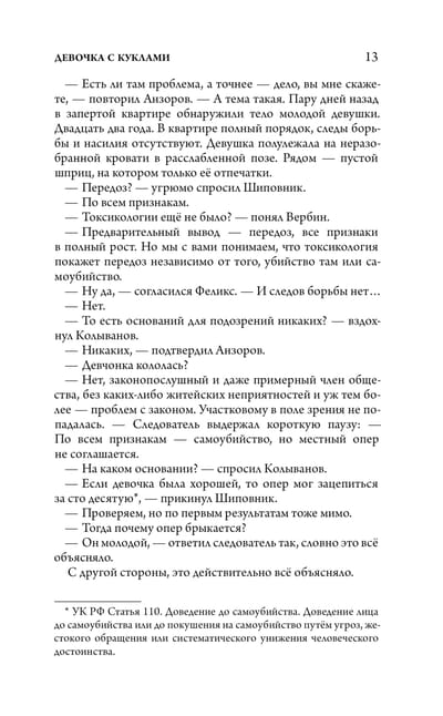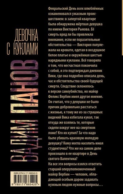 Февральский День всех влюблённых ознаменовался ужасным происшествием: в запертой квартире была обнаружена мёртвая девушка по имени Виктория Рыкова. Её смерть вряд ли бы привлекла внимание, если не поразительные обстоятельства — Виктория полулежала на кровати, одетая в воздушное белое платье и окружённая шестью нарядными куклами. Всё говорило о том, что несчастная покончила с собой, и это подтверждал дневник Вики, где она подробно описала день, час и обстоятельства своей будущей смерти. Следствие склонялось к версии самоубийства, но майор Феликс Вербин имел другое мнение. Он считал, что у девушки не было причин добровольно расстаться с жизнью, к тому же из-за страшных видений Вика избегала кукол, так откуда же взялись те, которые сидели вокруг нее на смертном ложе? Кто их купил? За что надо было убивать красивую молодую девушку? Кому могла насолить юная студенточка? Что же на самом деле произошло в ее квартире в День святого Валентина?