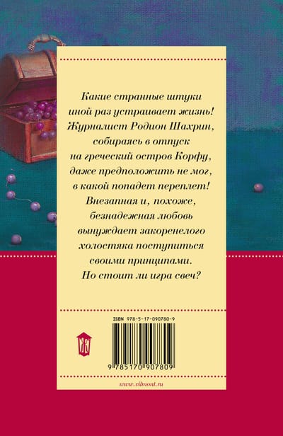 Какие странные штуки иной раз устраивает жизнь! Журналист Родион Шахрин, собираясь в отпуск на греческий остров Корфу, даже предположить не мог, в какой попадет переплет! Внезапная и, похоже, безнадежня любовь вынуждает закоренелого холостяка поступиться своими принципами. Но стоит ли игра свеч?