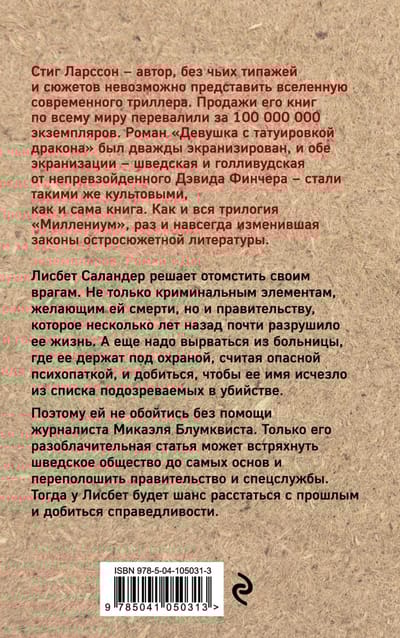 Поэтому ей не обойтись без помощи журналиста Микаэля Блумквиста. Только его разоблачительная статья может встряхнуть шведское общество до самых основ и переполошить правительство и спецслужбы. Тогда у Лисбет будет шанс расстаться с прошлым и добиться справедливости.