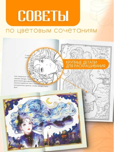В наших раскрасках плотная бумага 120 грамм, которая позволит вам спокойно использовать карандаши, ручки, фломастеры. Для акварели и маркеров мы рекомендуем подкладывать лист бумаги, чтобы не повредить следующую страницу. Раскраска станет отличным подарком для себя и друзей. Раскрашивайте, расслабляйтесь и забывайте о тревогах хотя бы на короткий момент.