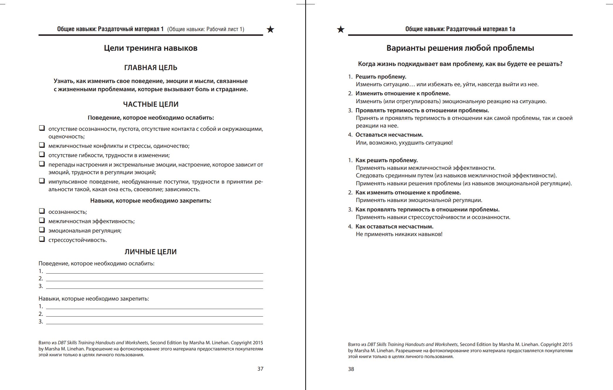 Диалектическая поведенческая терапия: тренинг навыков. Раздаточные материалы и рабочие листы