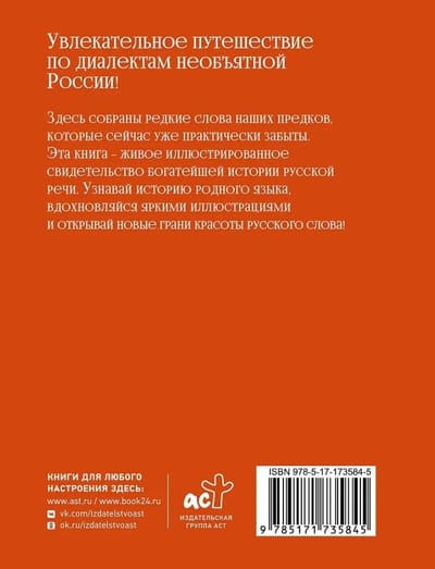 В этой книге собраны редкие слова наших предков, которые сейчас уже практически забыты. Это живое иллюстрированное свидетельство богатейшей истории русской речи. Над ней работало около сотни художников из всех уголков России. Узнавай историю родного языка, вдохновляйся яркими иллюстрациями и открывай новые грани красоты русского слова!