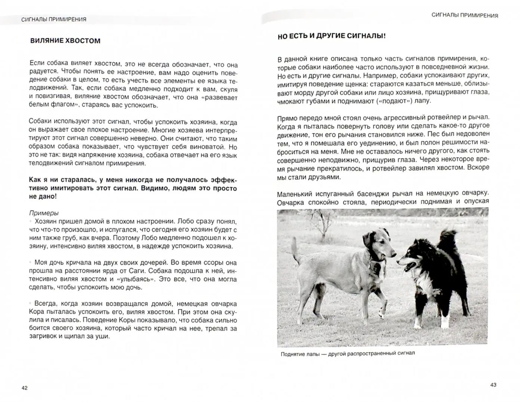 Сигналы примирения — это тонкий язык телодвижений, с помощью которого собаки выражают свое отношение к окружающему миру. В книге вы найдете подробное описание нескольких десятков сигналов примирения, информацию о том, как, когда и с какой целью собаки их используют, многочисленные примеры из практики, описывающие сцены общения собак на их языке. В книге также приводятся примеры имитации сигналов примирения человеком для общения с собаками.