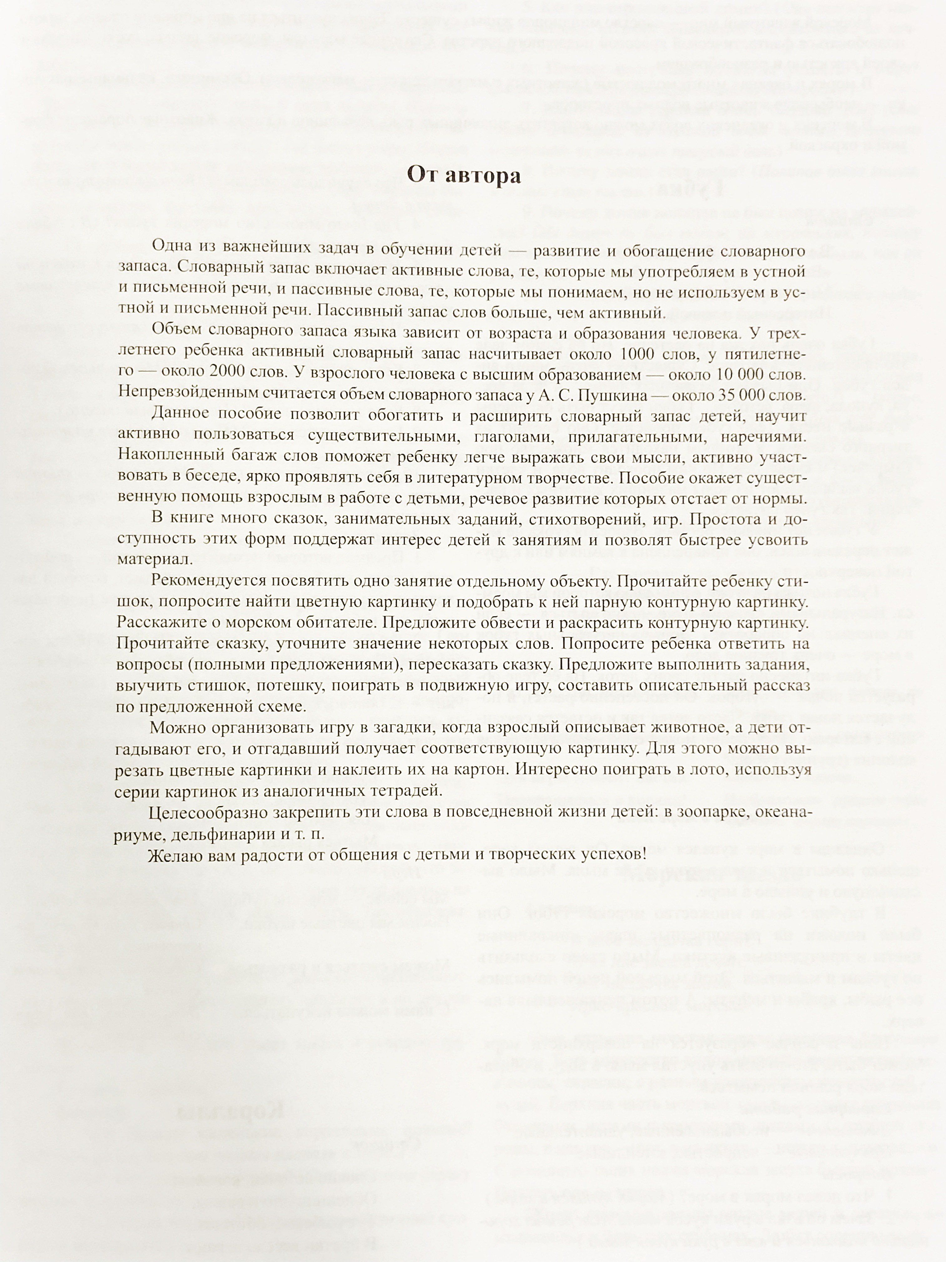 В книге много авторских сказок, стихотворений, занимательных заданий, игр по лексической теме «Обитатели морей и океанов». На вклейке даны цветные предметные картинки, а также картинки для раскрашивания (обводки, штриховки). Пособие окажет существенную помощь воспитателям и логопедам, а также может быть полезно гувернерам и родителям в домашних занятиях с детьми.