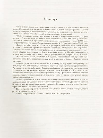 Материал, представленный в пособии, позволит обогатить и расширить словарный запас детей. Научит пользоваться существительными, прилагательными, глаголами, наречиями.