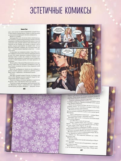 Вас ждет обрез с узором, двухстороняя суперобложка, оборот, которой представляет собой календарь на 2026 год! Его можно повесить на стену, чтобы не расставаться с любимыми героями. Внутри разворотные и постраничные сюжетные иллюстрации, два мини-комикса, форзацы с ключевыми сценами дилогии и атмосферная верстка. В подарок к каждому экземпляру — магнитная закладка с Алиной и Кириллом!