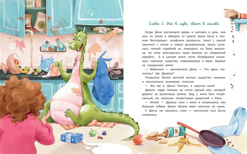 Стоило Дине ненадолго оставить дракона одного, и уютный дом превратился в руины: игрушки разбросаны, на полу - лужа, с полок сыпется мука, а корешок любимой книги оторван. Ох и влетит девочке за такое! А родители вот-вот вернутся. Придётся учить непутёвого друга убирать за собой!.. И желательно поскорее...
