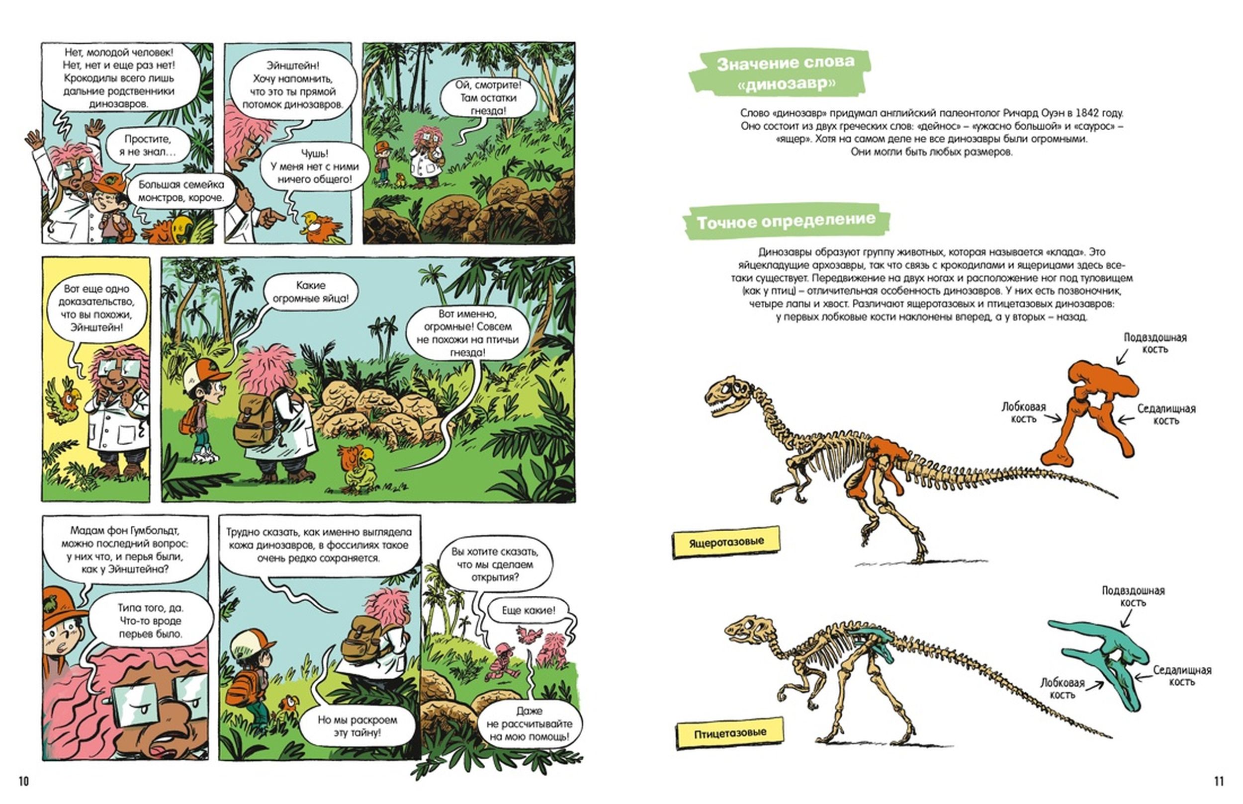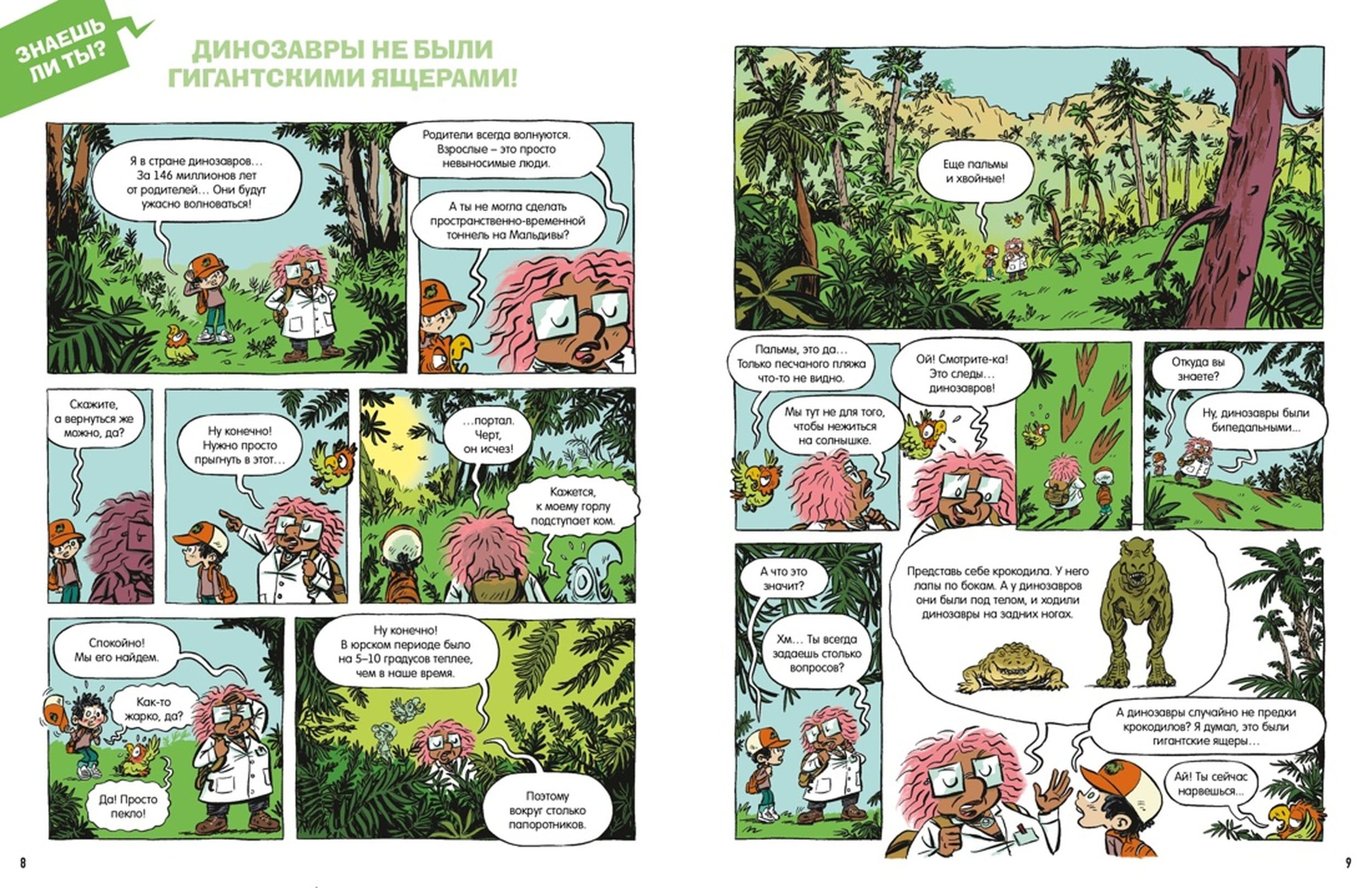 Добро пожаловать в леса юрского периода. Эта книжка комиксов расскажет много интересного о динозаврах: чем они питались, как охотились и где обитали. Ты узнаешь, почему ученые до сих пор спорят о вымирании динозавров и какие современные животные являются прямыми потомками этих гигантских рептилий.