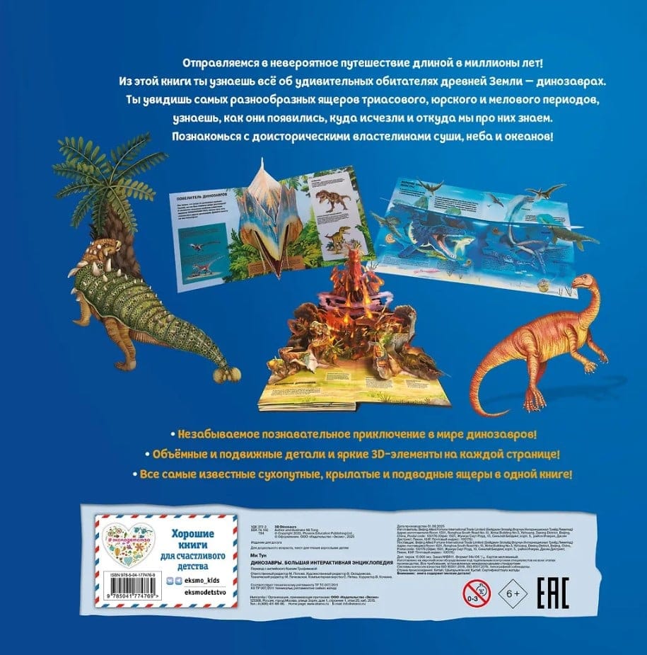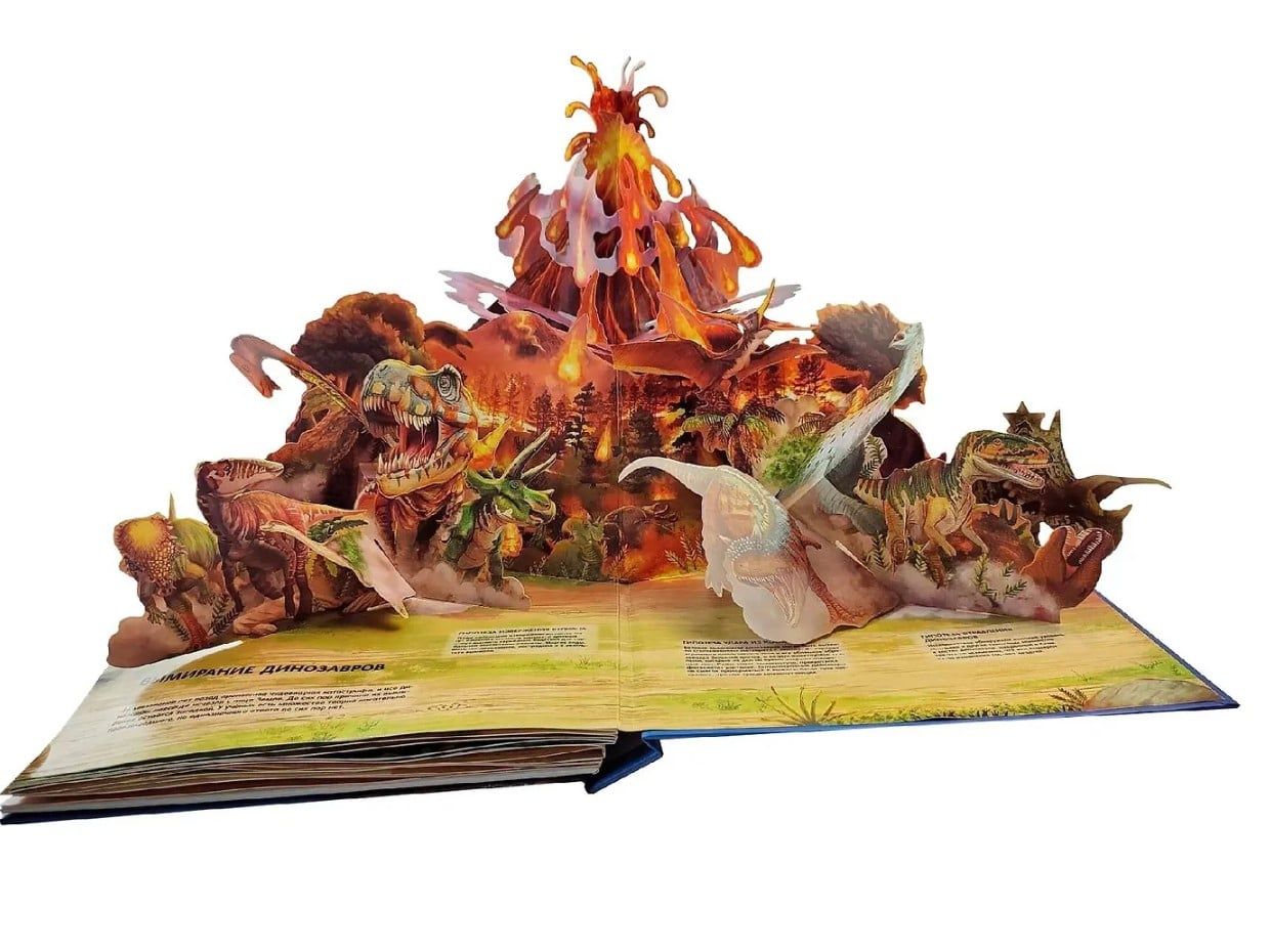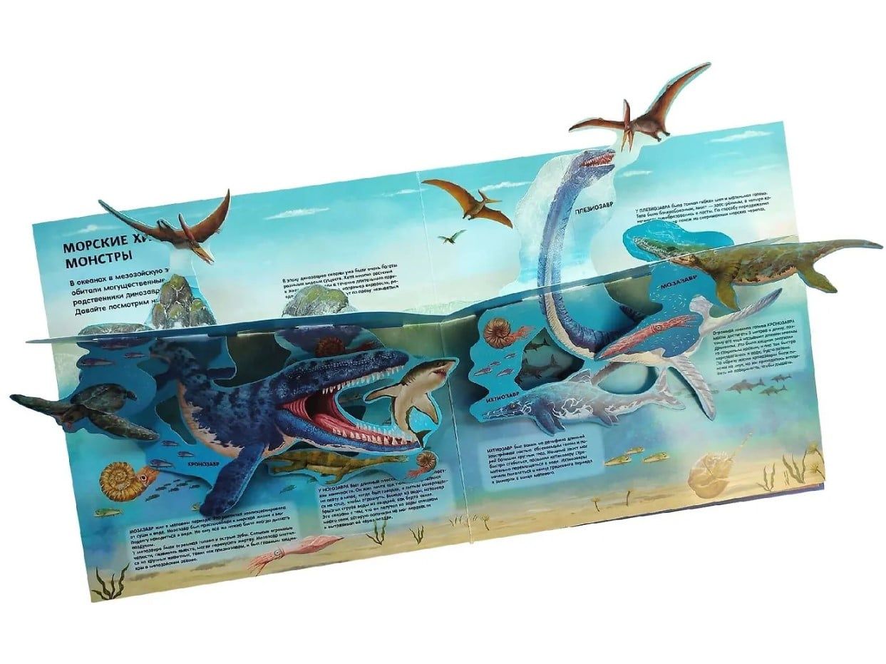 Ваш ребёнок мечтает разгадать секреты динозавров? Объёмные подвижные фигурки древних ящеров выпрыгнут ему навстречу прямо со страниц этой уникальной книги-панорамки!