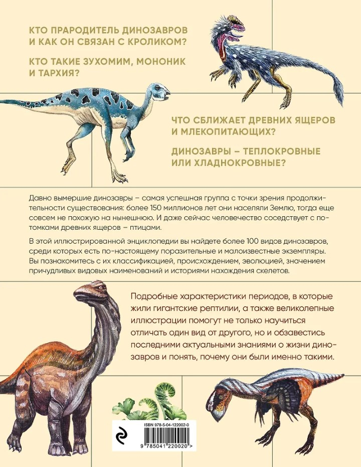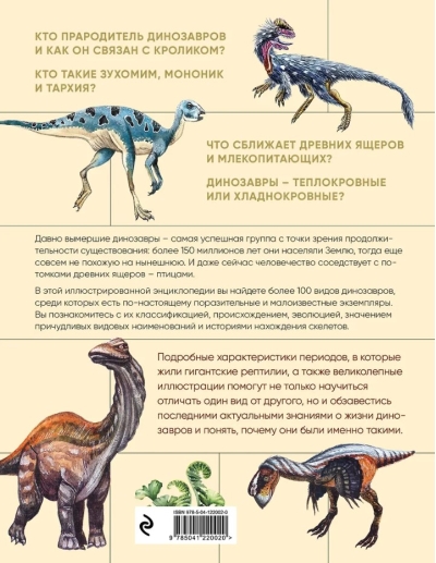 В этой иллюстрированной энциклопедии вы найдете более 100 видов динозавров, среди которых есть по-настоящему поразительные и малоизвестные экземпляры. Вы познакомитесь с их классификацией, происхождением, эволюцией, значением причудливых видовых наименований и историями нахождения скелетов.