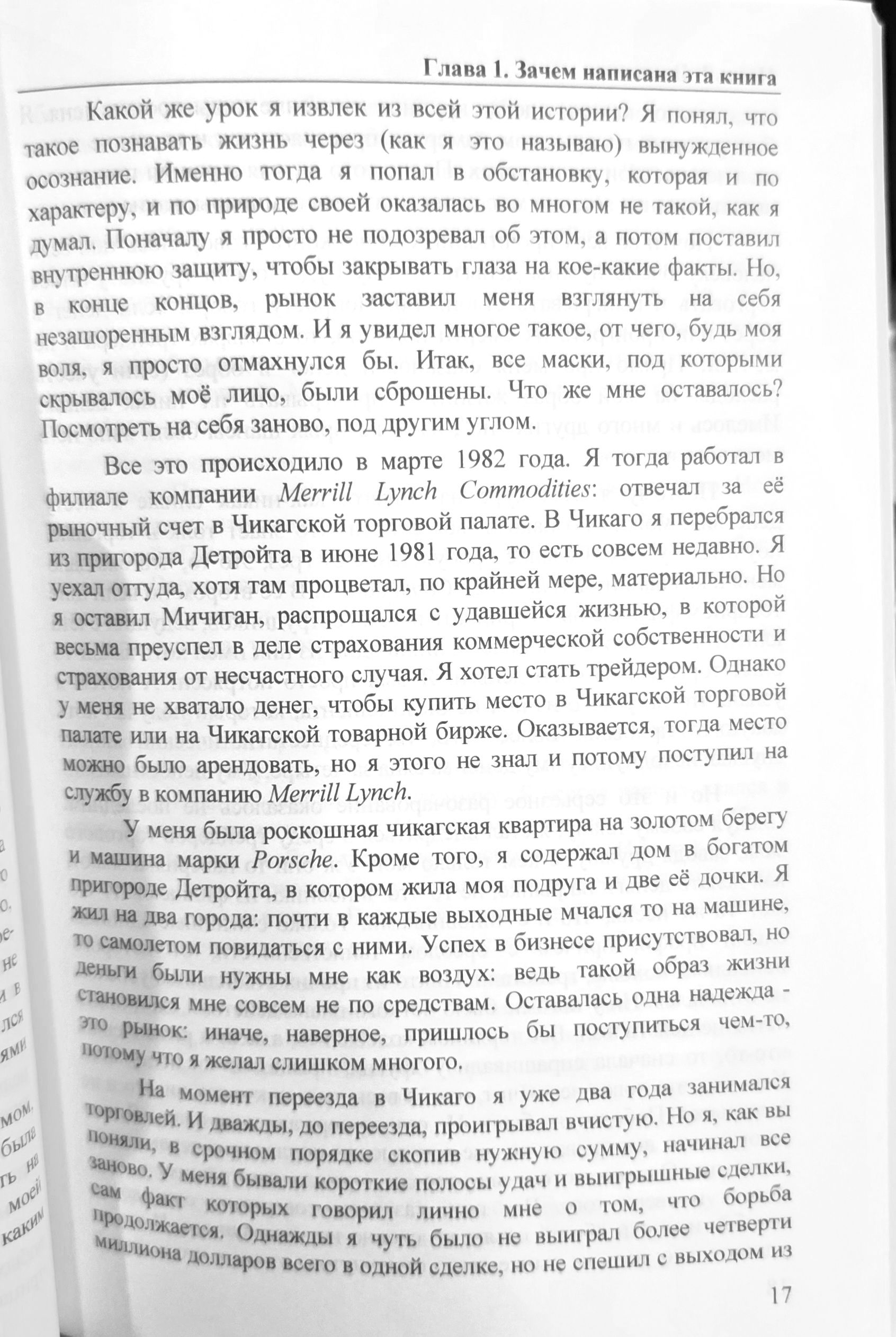 В этой книге Марк Дуглас, автор бестселлера «Зональный трейдинг» объясняет, почему большинство трейдеров не готовы перейти на совершенно иную тактику, без которой на рынке не преуспеть. Опираясь на редкую проницательность, приобретенную благодаря личному опыту торговли на товарных рынках, автор показывает, почему понятия, применяемые для достижения успеха в обществе, на рынке становятся зачастую серьезными психологическими барьерами. Вскрыв причины развития пораженческого настроя, автор предлагает читателю провести «генеральную уборку его внутреннего мира» с выкорчевыванием засевших там понятий и традиционного образа мышления. В книге рассказано, как развивать и применять подход и тактику, которые преодолеют психологические барьеры и приведут к успеху. Книга поможет читателю присоединиться к тем трейдерам, которые научились управлять своими рыночными действиями и стабильно добиваются на рынке наивысшего показателя прибыли.