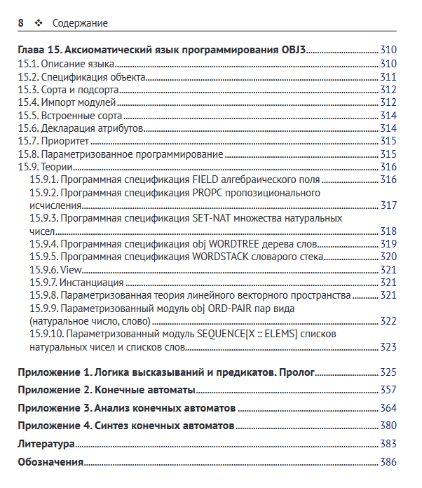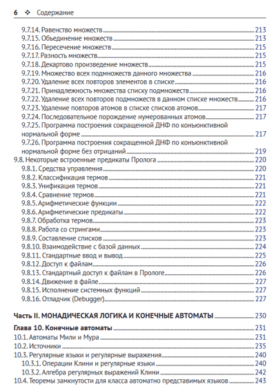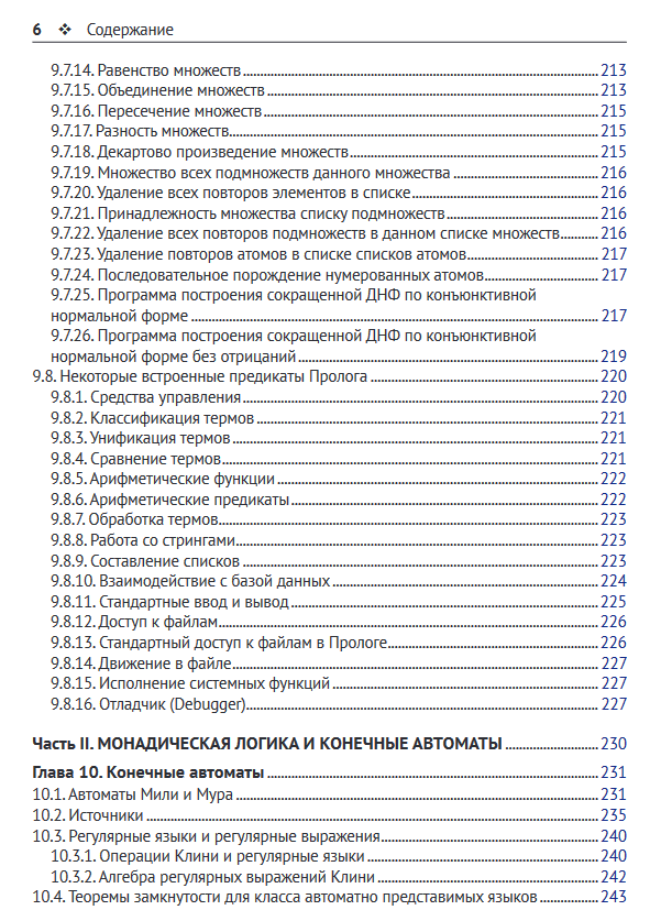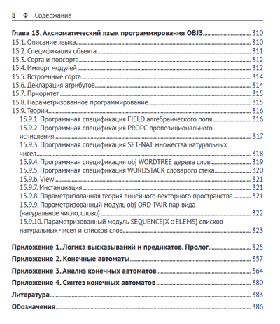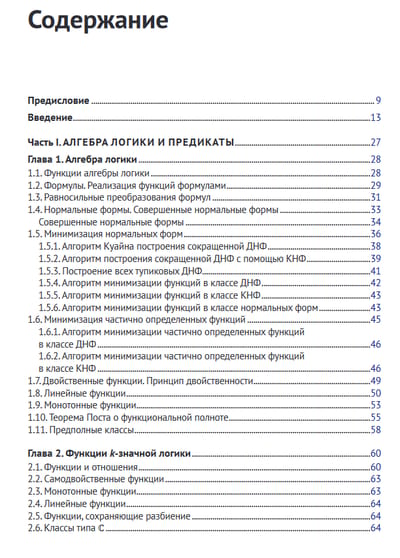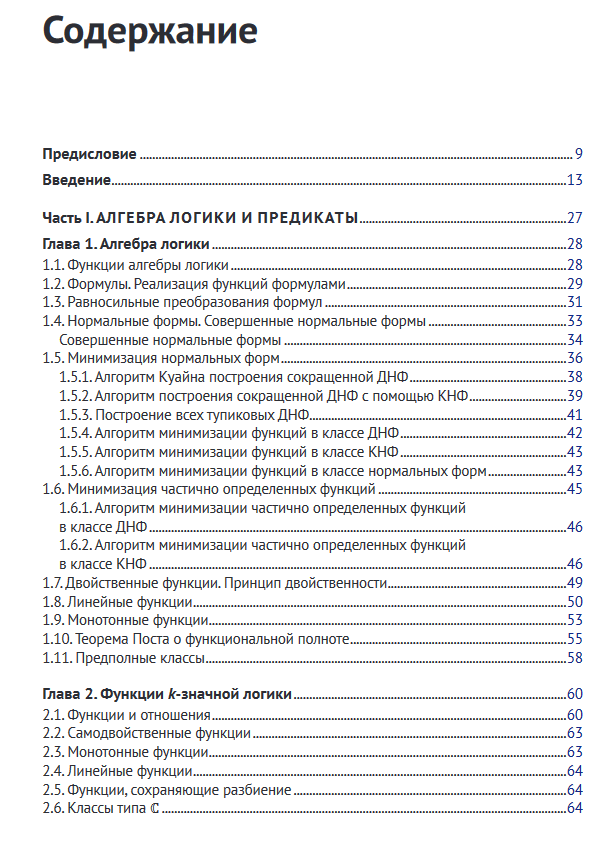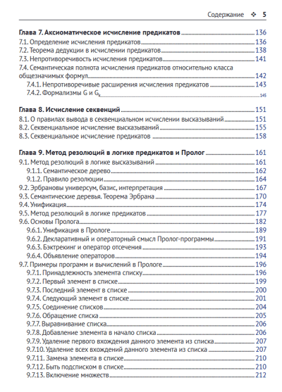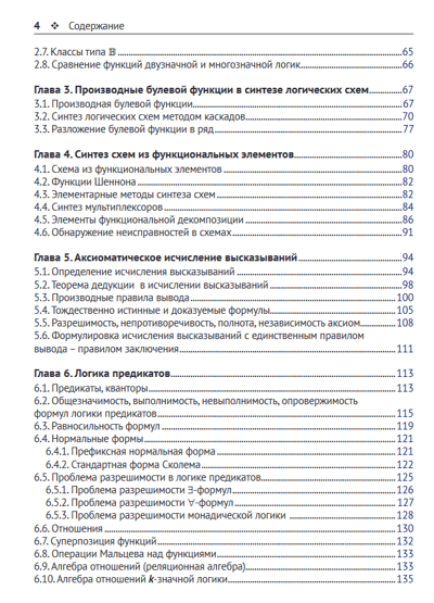 Книга содержит основные сведения из формально-логических систем. Это функции алгебры логики (булевы функции), теорема Поста о функциональной полноте, k-значные логики, производные булевых функций, аксиоматические исчисления высказываний, предикатов, секвенций, резолюций и язык программирования Пролог. Рассматриваются монадическая логика, конечные автоматы и представимые ими языки, темпоральная логика, аксиоматический язык программирования OBJ3.