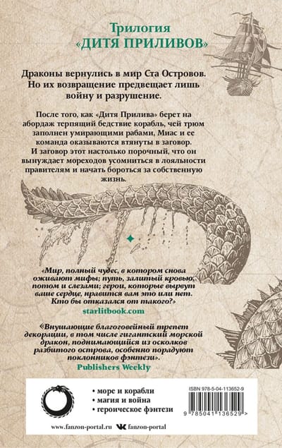 Ужасная находка после кораблекрушения раскрывает команде «Дитя Приливов» часть бесчеловечного плана правительницы Ста островов. Но Удачливая Миас готова на все, чтобы остановить мать. Джорон Твайнер открывает в себе непостижимый дар – он может песней призвать кейшана. От действий Джорона, ветрогона и Миас зависят жизни множества людей. Они творят историю. Но за это придется дорого заплатить.