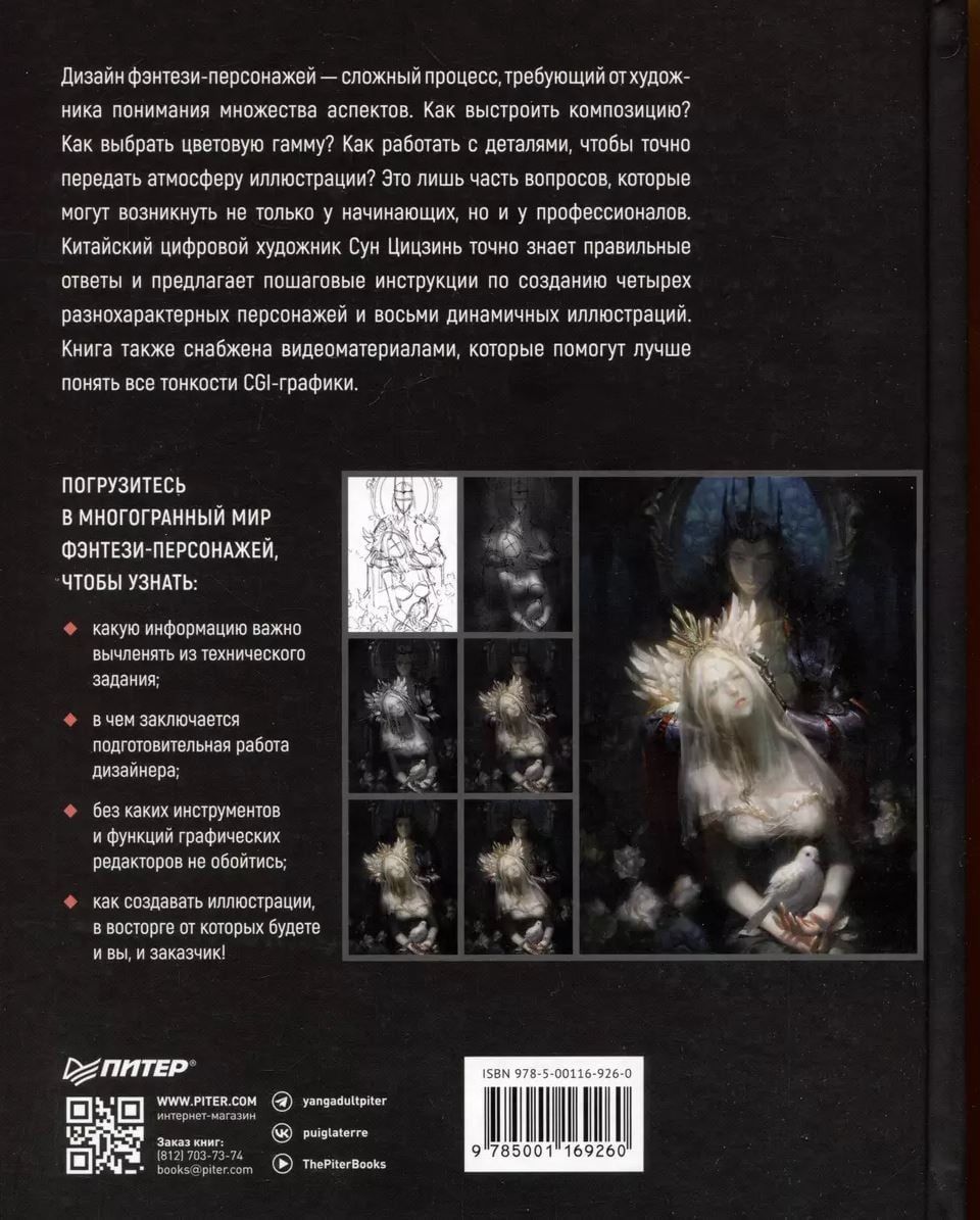 Дизайн фэнтези-персонажей — сложный процесс, требующий от художника понимания множества аспектов. Как выстроить композицию? Как выбрать цветовую гамму? Как работать с деталями, чтобы точно передать атмосферу иллюстрации? Это лишь часть вопросов, которые могут возникнуть не только у начинающих, но и у профессионалов. Китайский цифровой художник Сун Цицзинь точно знает правильные ответы и предлагает пошаговые инструкции по созданию четырех разнохарактерных персонажей и восьми динамичных иллюстраций. Книга также снабжена видеоматериалами, которые помогут лучше понять все тонкости CGI-графики.