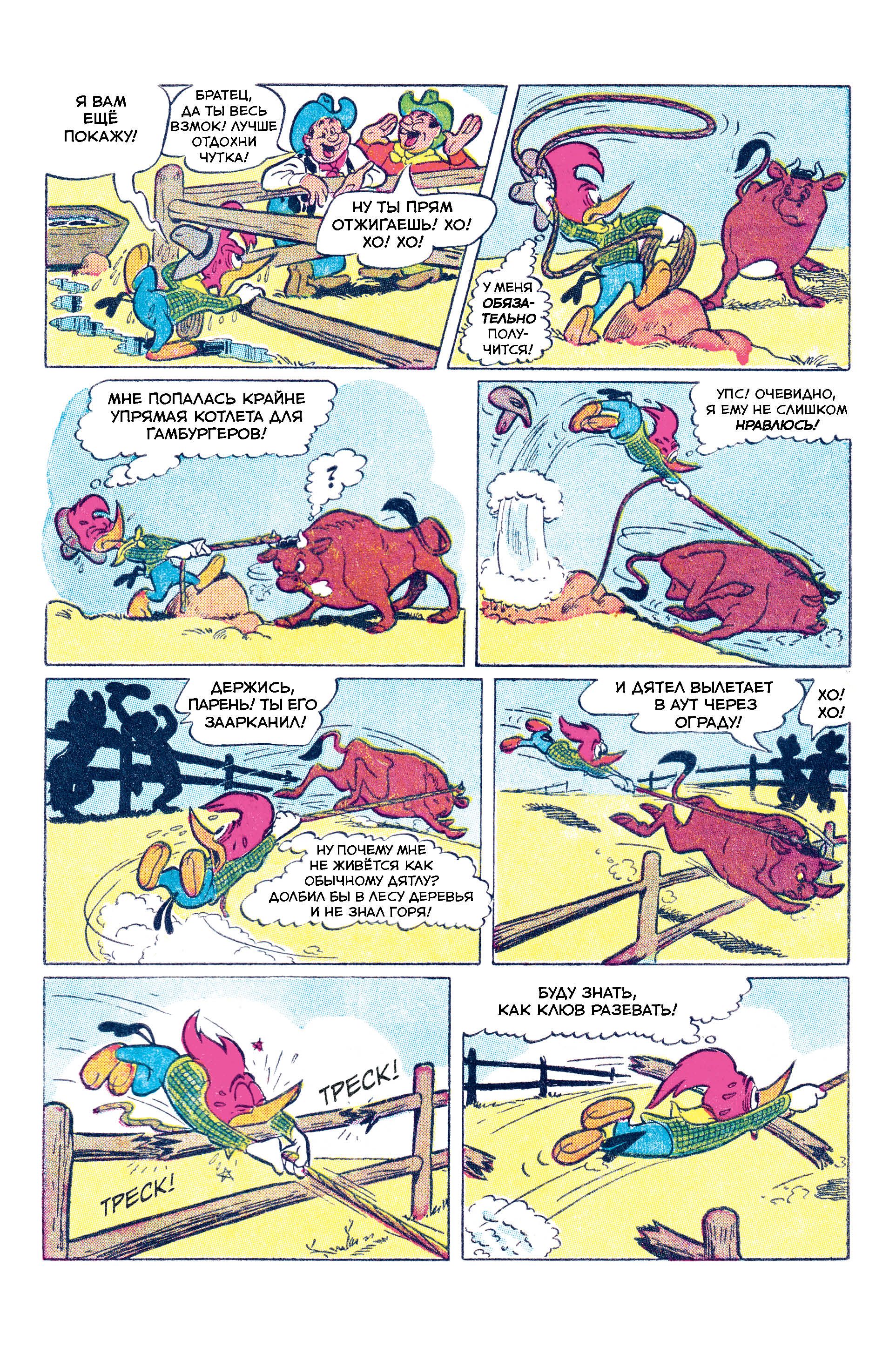 Весёлый непоседа Дятел Вуди никак не может усидеть на одном месте и постоянно ищет себя. В этом сборнике неугомонный Дятел будет добиваться успеха в журналистике, рестораторском деле и даже примерит ковбойскую шляпу. Но далеко не каждое дело будет даваться Вуди легко.