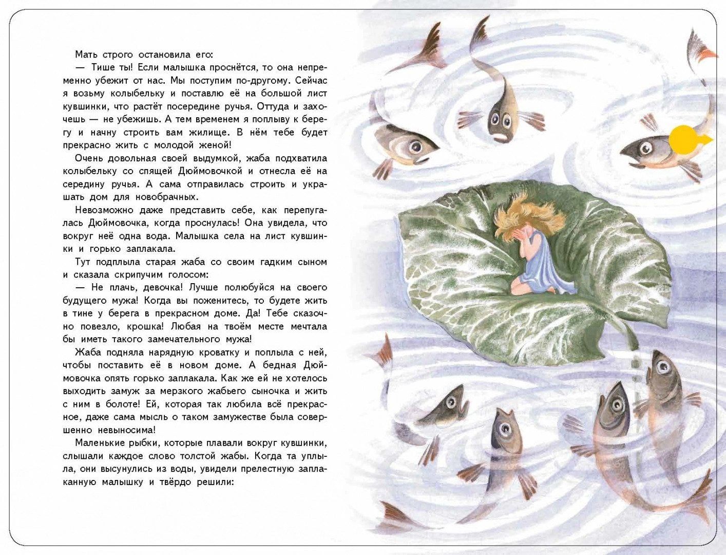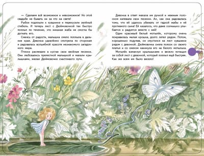 «Однажды ночью, когда Дюймовочка сладко спала в своей постельке, в окно запрыгнула старая жаба». С этого момента жизнь прелестной Дюймовочки наполняется самыми необычайными событиями. Гадкая жаба, тщеславные жуки и скупая мышь встречаются на её пути, но благодаря своей доброте и состраданию милой девушке удаётся спасти бедную ласточку и попасть в замечательную страну эльфов. Музыкальная книга-аудиоспектакль расскажет эту необычную сказку. Текст сказки адаптирован для детей от 2 до 5 лет. Издание выполнено в большом формате, украшено цветной фольгой. Каждая страница — из плотного картона. 10 кнопок, два режима проигрывания аудиоспектакля. Музыкальный модуль работает от двух батареек типа ААА.