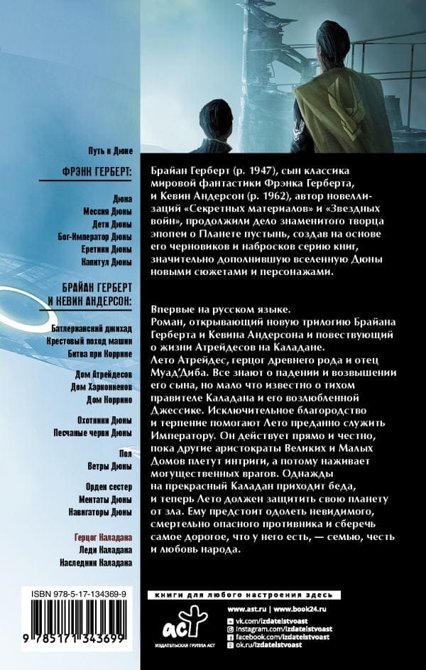 Впервые на русском языке. Роман, открывающий новую трилогию Брайана Герберта и Кевина Андерсона и повествующий о жизни Атрейдесов на Каладане. Лето Атрейдес, герцог древнего рода и отец Муад’Диба. Все знают о падении и возвышении его сына, но мало что известно о тихом правителе Каладана и его возлюбленной Джессике. Исключительное благородство и терпение помогают Лето преданно служить Императору. Он действует прямо и честно, пока другие аристократы Великих и Малых Домов плетут интриги, а потому наживает могущественных врагов. Однажды на прекрасный Каладан приходит беда, и теперь Лето должен защитить свою планету от зла. Ему предстоит одолеть невидимого, смертельно опасного противника и сберечь самое дорогое, что у него есть, – семью, честь и любовь народа.