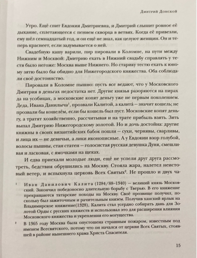 Русь, славная своими бескрайними просторами и природными богатствами, страдает от многолетних поборов и набегов татар, а князья враждуют между собой. Именно в это тяжёлое и тревожное время во главе Руси становится молодой московский князь Дмитрий Иванович. По его призыву собираются воинские отряды, городское и крестьянское ополчение — весь народ поднимается на борьбу с врагом. Читатель познакомится с ближайшим сподвижником великого князя Михаилом Бренком и игуменом земли Русской Сергием Радонежским, воеводой Боброком и зодчим Кириллом, легендарными иноками-воинами Пересветом и Ослябей и многими другими доблестными мужами; станет свидетелем разгрома ордынцев на реке Воже и исторической битвы объединённого русского войска на Куликовом поле.