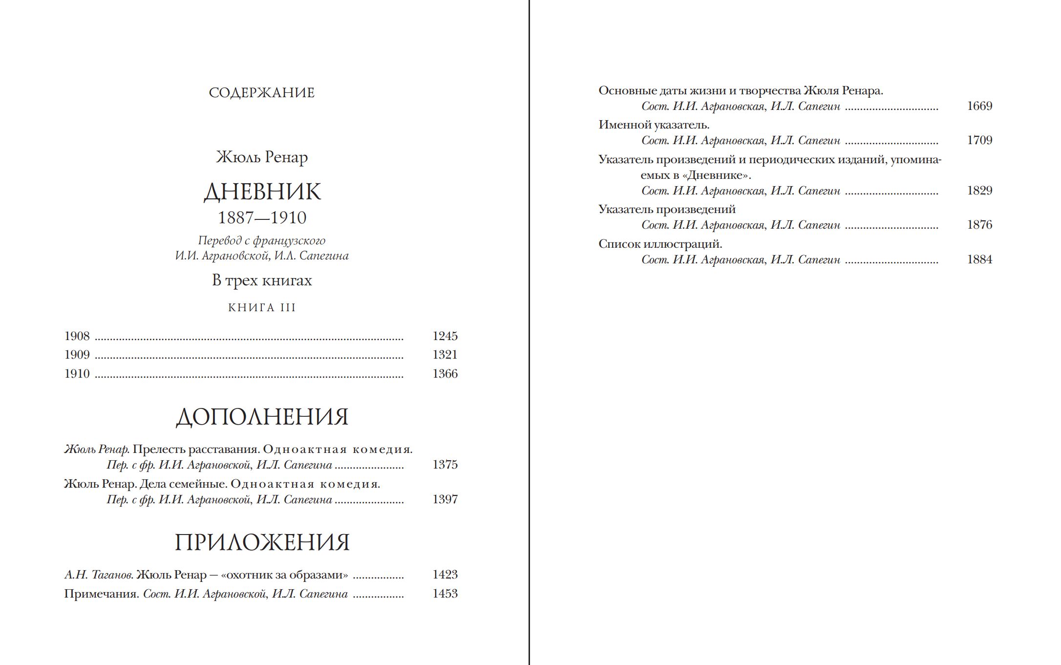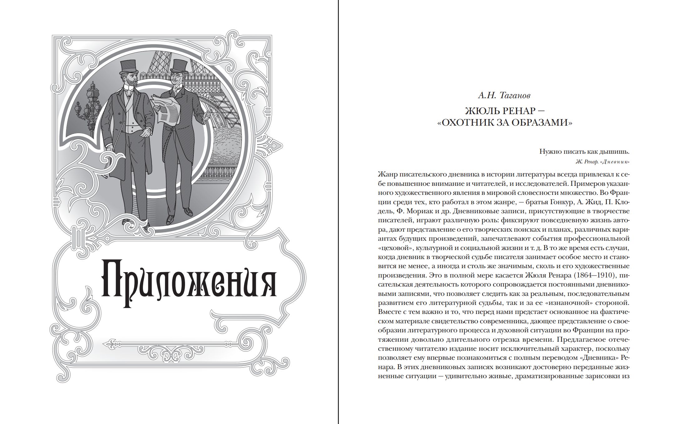 В раздел «Дополнения» вошли две пьесы Ренара — «Прелесть расставания» и «Дела семейные», раскрывающие его как тонкого психолога и мастера сценического слова. В «Приложениях» представлена статья А. Н. Таганова о месте писателя в культуре «Belle Époque», а также подробные комментарии переводчиков, поясняющие контексты и реалии текста. Издание дополнено иллюстративным альбомом с портретами современников Ренара и визуальными материалами эпохи.