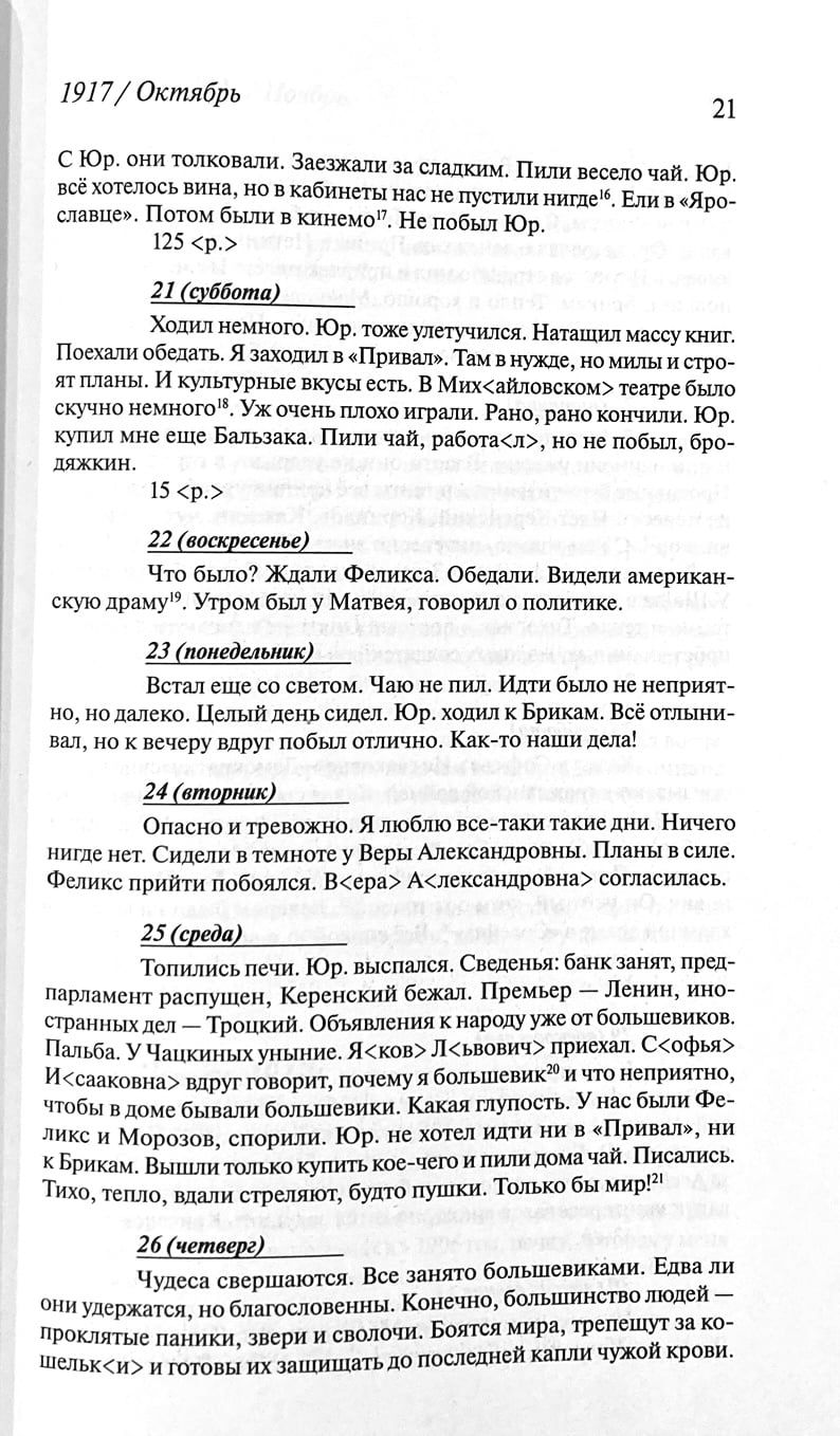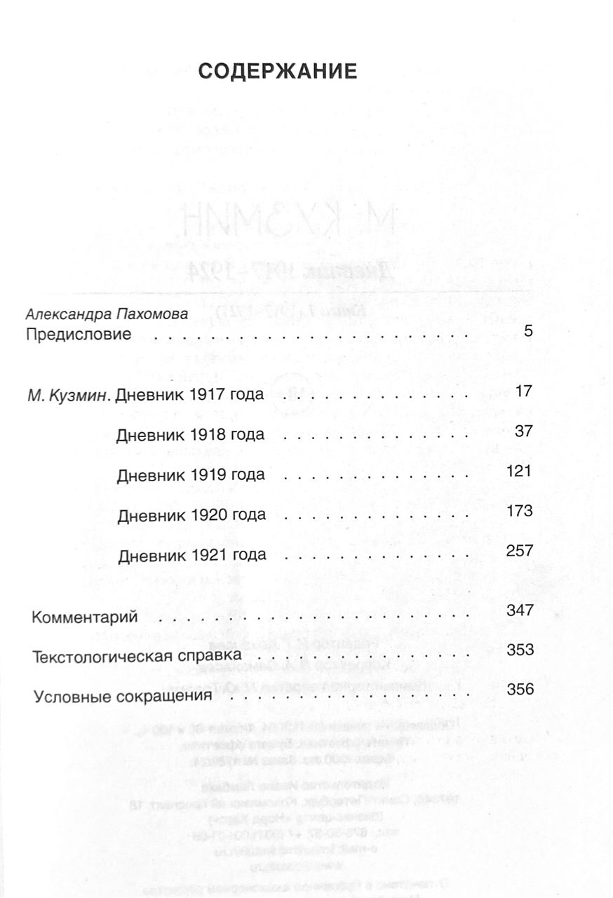 Дневник Михаила Алексеевича Кузмина (1872–1936) можно рассматривать как художественное произведение, не менее важное, чем его проза, поэзия или драматургия. Для Кузмина это был эстетический проект, соотнесенный с динамикой его творческих задач. Выход части Дневника спустя век после написания должен заполнить лакуну в наших знаниях не только о жизни и творчестве поэта, прозаика и драматурга, но и об атмосфере и событиях первых пореволюционных лет Петрограда – Ленинграда, о литературе и театре той поры. Потенциальный читатель Дневника — не только исследователь культуры, но человек, который любит и погружаться в прошлое, и способен прочитать текст 1924 года на фоне современных событий.