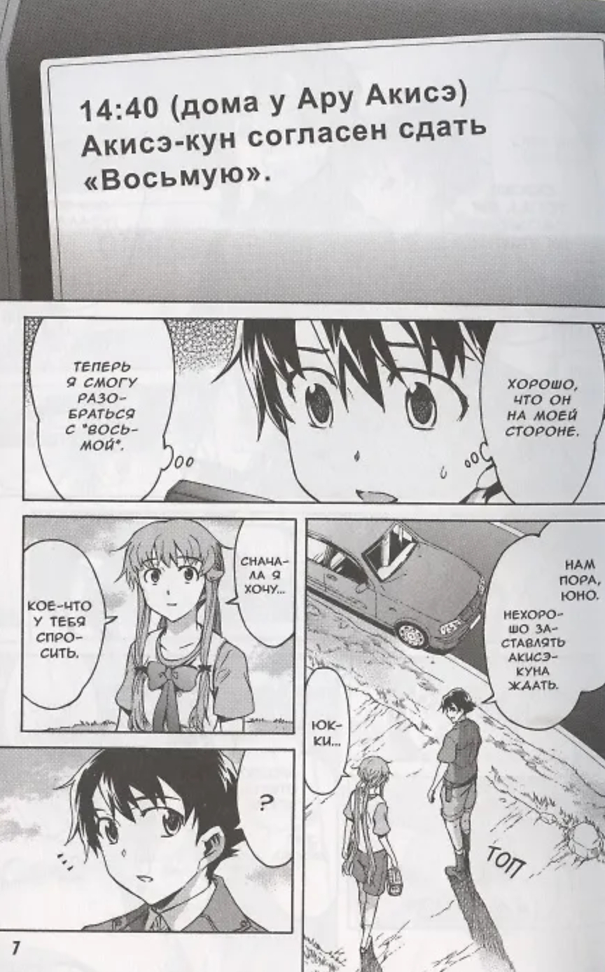 У ничем не примечательного ученика средней школы Юкитэру Амано есть одно хобби - он ведет в своем телефоне дневник, куда записывает все, что происходит вокруг. Однажды утром он обнаруживает в нем записи из будущего. Поначалу Юкитэру не нарадуется открывшимся перед ним перспективам, но в один прекрасный день он натыкается на описание собственной смерти. Как оказалось, Юкитэру, сам того не подозревая, стал одним из двенадцати владельцев дневников будущего - участников беспощадной игры на выживание, организованной всемогущим повелителем времени и пространства. Удастся ли ему пройти игру? И может ли он довериться странной однокласснице Юно, заявившей, что они с ним обречены быть вместе?