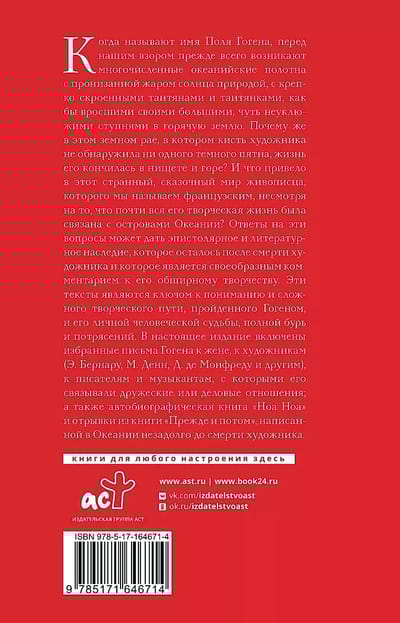 Ответы на эти вопросы может дать эпистолярное и литературное наследие, которое осталось после смерти художника и которое является своеобразным комментарием к его обширному творчеству. Этитексты являются ключом к пониманию и сложного творческого пути, пройденного Гогеном, и его личной человеческой судьбы, полной бурь и потрясений. В настоящее издание включены избранные письма Гогена к жене, к художникам (Э. Бернару, М. Денн, Д. де Монфреду и другим), к писателям и музыкантам, с которыми его связывали дружеские или деловые отношения; а также автобиографическая книга «Ноа Ноа» и отрывки из книги «Прежде и потом», написанной в Океании незадолго до смерти художника.