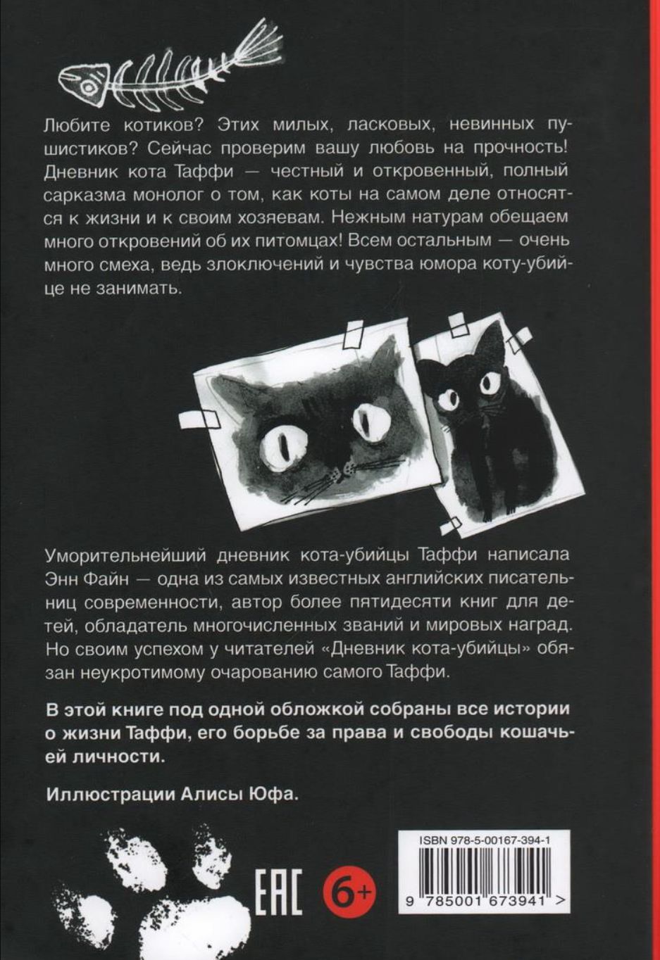 Теперь все истории о многочисленных проделках Таффи собраны в одной книге с новыми иллюстрациями. Энн Файн, кавалер ордена Британской империи, член Королевского литературного общества, обладатель двух медалей Карнеги, многократный лауреат звания «Лучший детский писатель года» в Британии, французской премии за лучшую переводную книгу, нескольких престижных американских литературных премий и многих других.
