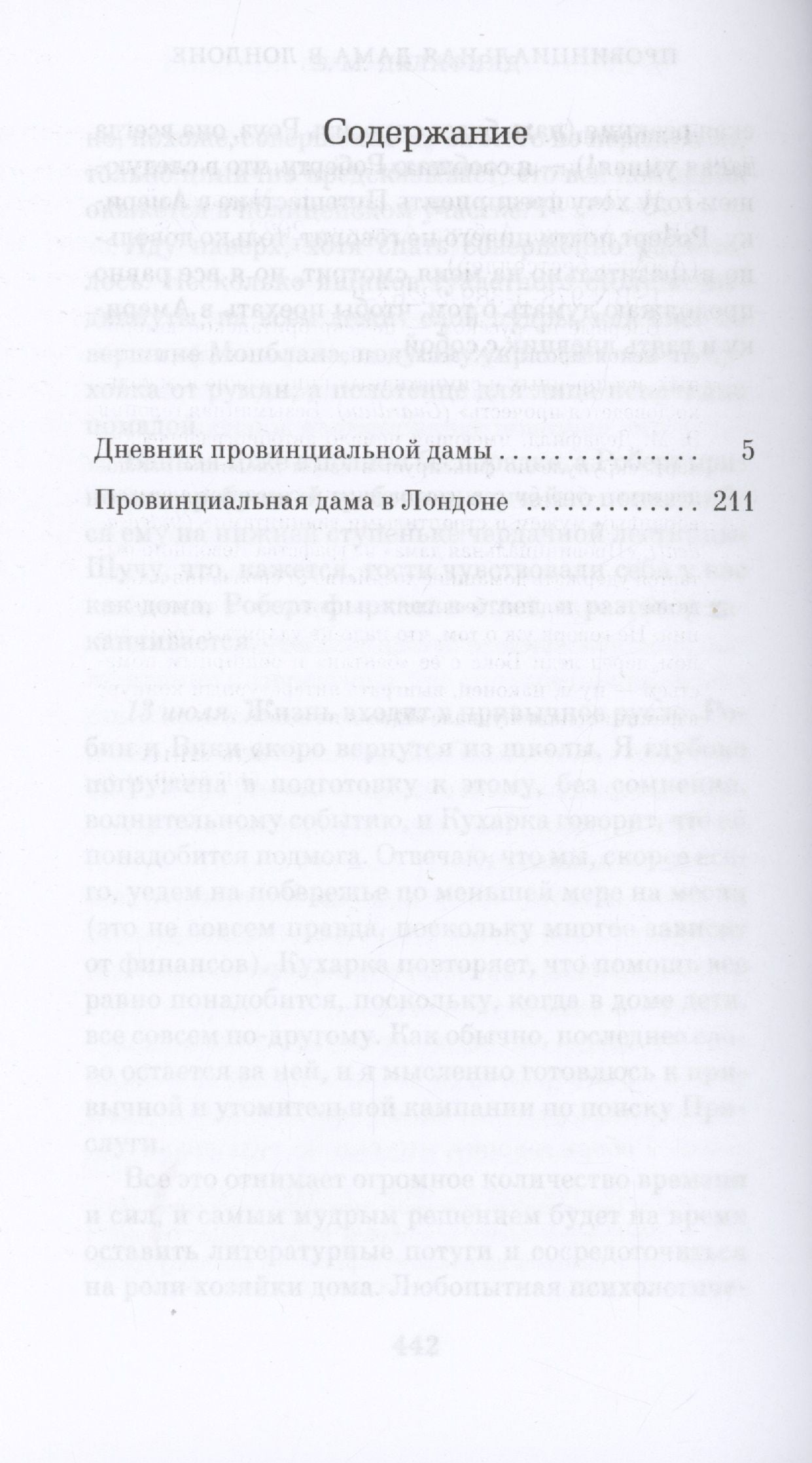 Впервые на русском — шедевр британской юмористической прозы XX века, «одна из самых уморительных, изощренных и симпатичных книг, какие вам только доведется прочесть» (Guardian). Безымянная героиня Э. М. Делафилд, имеющая немало автобиографических черт, скрупулезно фиксирует в своем дневнике каждодневную «борьбу с высокомерными соседями, неразговорчивым мужем и строптивыми гиацинтами» (Independent). «Провинциальная дама» из графства Девоншир пытается удержать домашнее хозяйство от сползания в хаос, детей — от лишних бесчинств, а прислугу — от увольнения. Не говоря уж о том, что надо не ударить в грязь лицом перед леди Бокс с ее «бентли» и обширным поместьем — ну и, наконец, выиграть литературный конкурс в феминистском журнале «Время не ждет»…