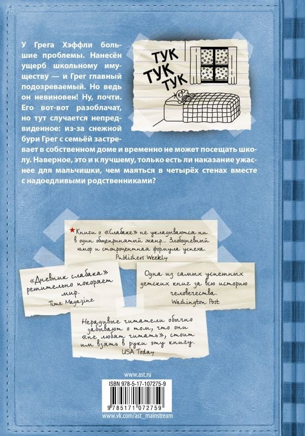 У Грега Хэффли большие проблемы. Нанесён ущерб школьному имуществу – и Грег главный подозреваемый. Но ведь он невиновен! Ну, почти. Его вот-вот разоблачат, но тут случается непредвиденное: из-за снежной бури Грег с семьёй застревает в собственном доме и временно не может посещать школу. Наверное, это и к лучшему, только есть ли наказание ужаснее для мальчишки, чем маяться в четырёх стенах вместе с надоедливыми родственниками?