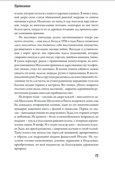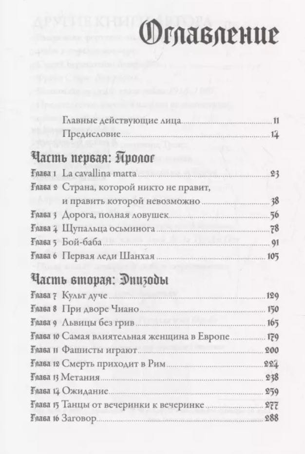 Эта книга посвящена не только трагической истории Эдды Муссолини (Чиано), но и истории Италии и ужасающей силе фашизма, тому, как беспрепятственно он закрепился в стране, ослабленной войной, и на континенте, погрязшем в хаосе и отчаянно стремящемся к миру.