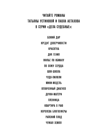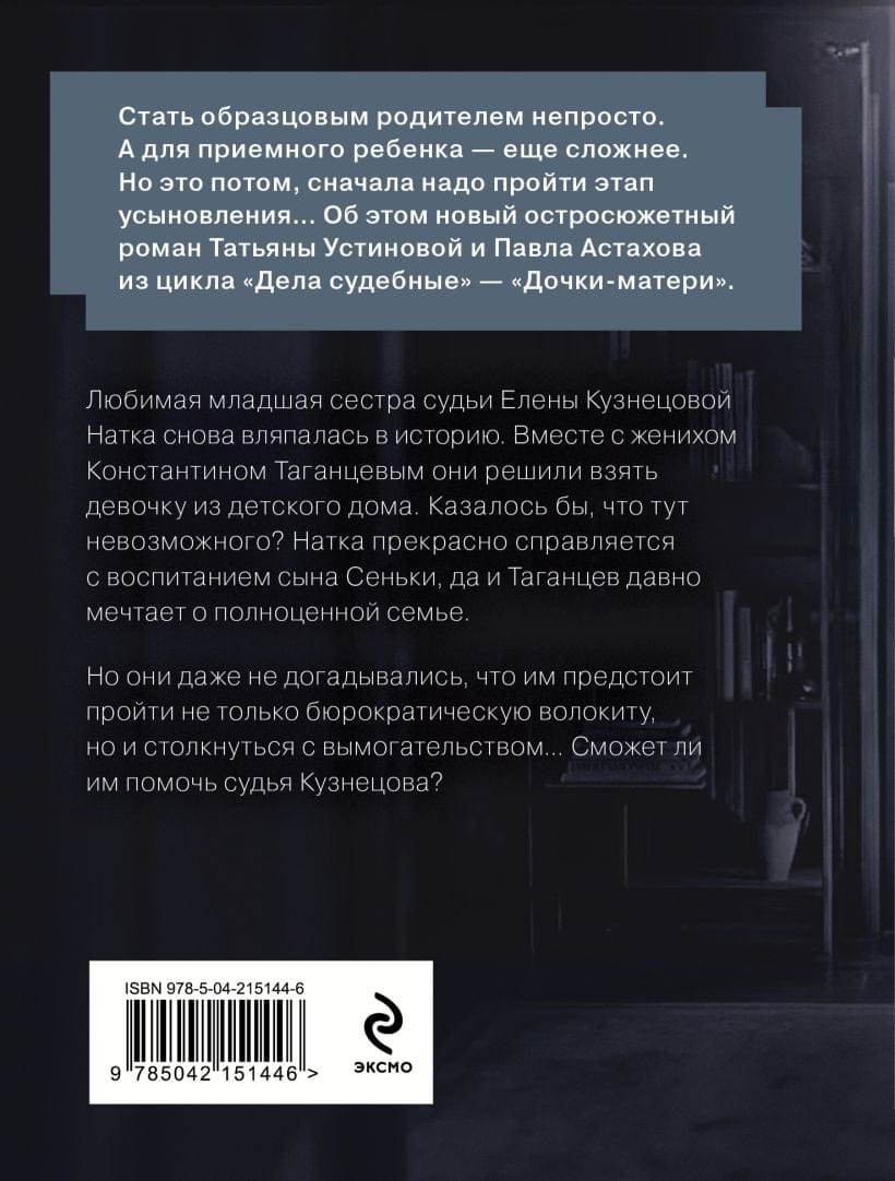 Остросюжетные романы Павла Астахова и Татьяны Устиновой из авторского цикла «Дела судебные» — это увлекательное чтение, где житейские истории переплетаются с судебными делами. В этот раз в основу сюжета легла актуальная история одного усыновления.