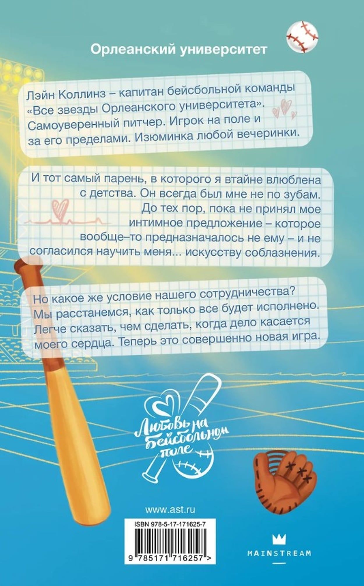 Лэйн Коллинз – капитан бейсбольной команды «Все звезды Орлеанского университета». Самоуверенный питчер. Игрок на поле и за его пределами. Изюминка любой вечеринки. И тот самый парень, в которого я втайне влюблена с детства. Он всегда был мне не по зубам. До тех пор, пока не принял мое интимное предложение – которое вообще–то предназначалось не ему – и не согласился научить меня... искусству соблазнения. Но какое же условие нашего сотрудничества? Мы расстанемся, как только все будет исполнено. Легче сказать, чем сделать, когда дело касается моего сердца. Теперь это совершенно новая игра.