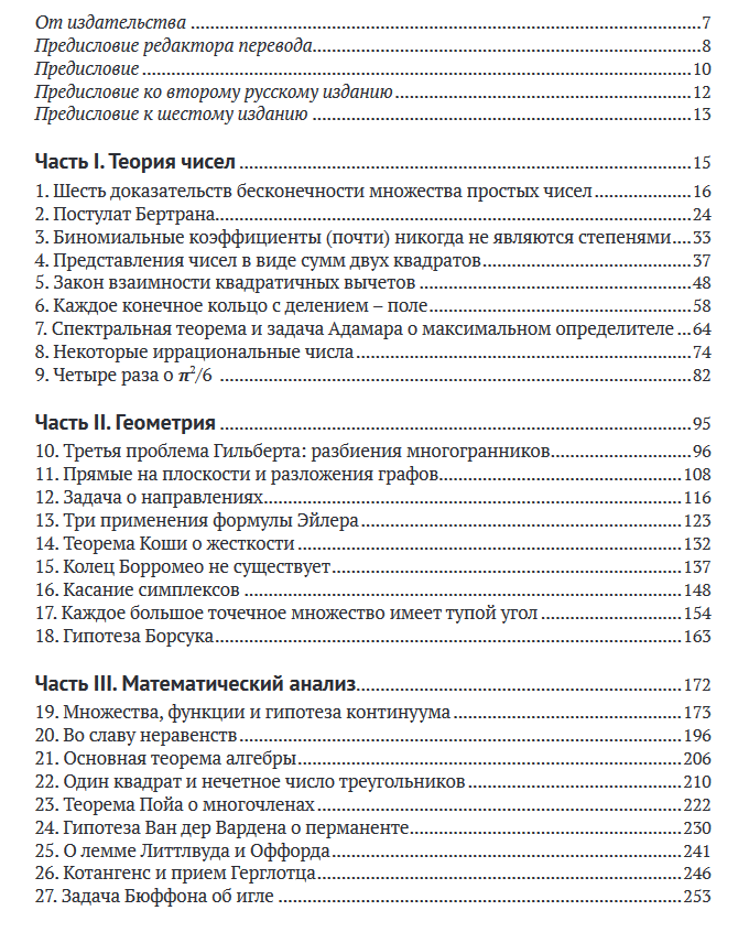 Айгнер и Циглер, основываясь на предложениях и рекомендациях Пауля Эрдёша, собрали много замечательных и удивительных результатов из различных областей математики и сумели с блеском изложить их полные, но краткие доказательства, которые используют неожиданные сочетания разнородных идей.