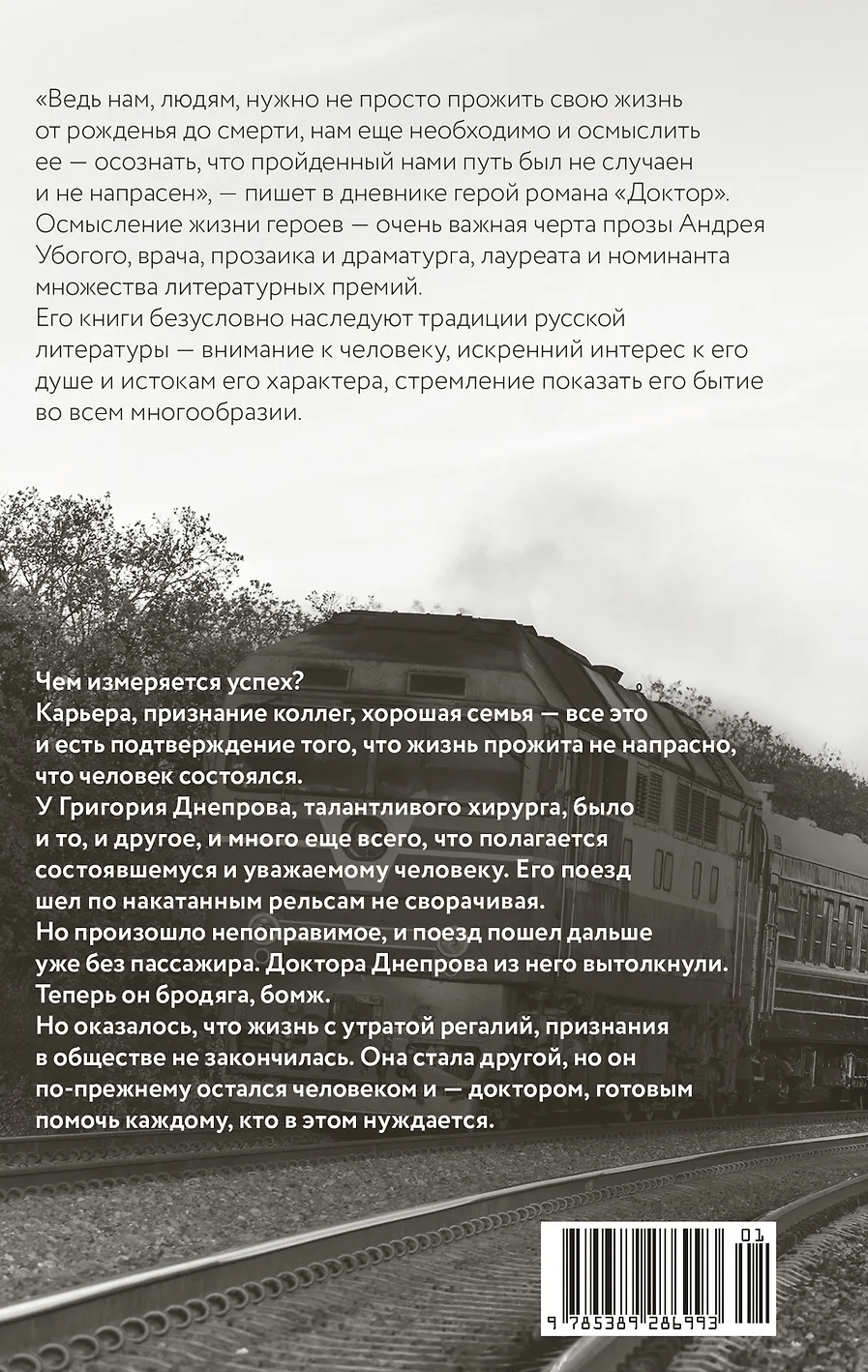 Осмысление жизни героев — очень важная черта прозы Андрея Убогого, врача, прозаика и драматурга, лауреата и номинанта множества литературных премий. Его книги безусловно наследуют традиции русской литературы — внимание к человеку, искренний интерес к его душе и истокам его характера, стремление показать его бытие во всем многообразии.