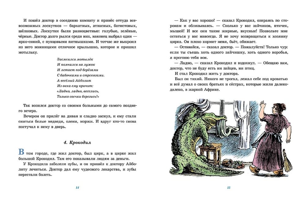 В переиздание сказочной повести Корнея Чуковского «Доктор Айболит» включены две части: «Путешествие в Страну Обезьян» и «Пента и морские пираты». Именно их с любовью и глубоким вниманием к персонажам и деталям иллюстрировал художник Владимир Конашевич.