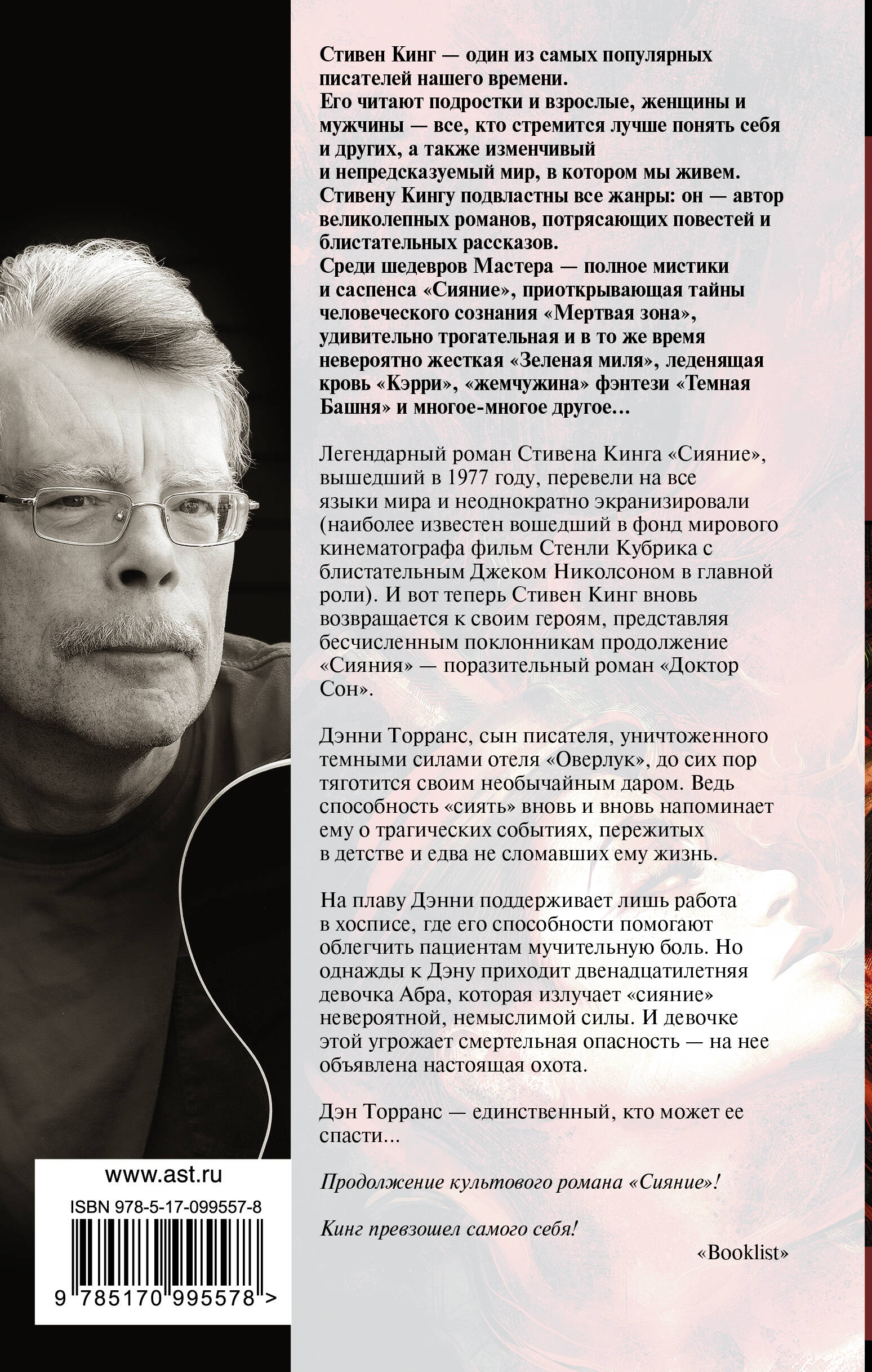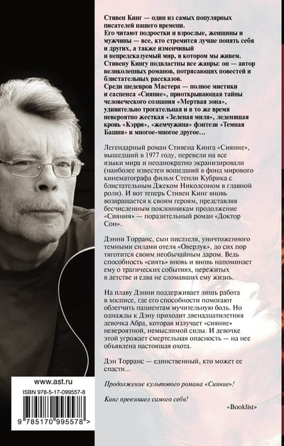 Дэнни Торранс, сын писателя, уничтоженного темными силами отеля «Оверлук», до сих пор тяготится своим необычайным даром. Ведь способность «сиять» вновь и вновь напоминает ему о трагических событиях, пережитых в детстве и едва не сломавших ему жизнь.