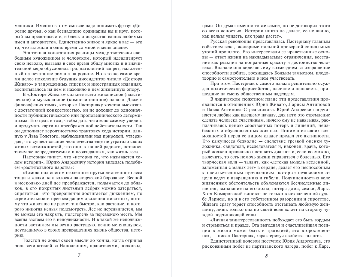 Академик Д. Лихачев назвал «Доктора Живаго» духовной автобиографией Пастернака. Возможно, это самое точное и самое краткое — поэтому не исключено, что самое ценное — описание книги. Добавить или уточнить может только сам автор: «Я пишу сейчас большой роман в прозе о человеке, который составляет некоторую равнодействующую между Блоком и мной (и Маяковским и Есениным, быть может)». В итоге появилась книга с масштабным полотном российской жизни от начала XX века до Великой Отечественной войны. В стране появился афоризм «Не читал, но осуждаю!» — и трагическая травля автора как предателя и клеветника советского строя. А в истории мировой литературы появился новый Нобелевский лауреат — Борис Леонидович Пастернак.