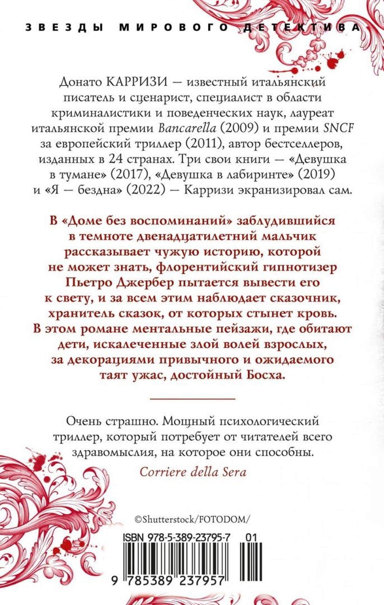Старая женщина каждое утро неизвестно почему просыпается в одно и то же время и едет в глухой лес, где однажды находит двенадцатилетнего мальчика. Мальчик жив и здоров, однако не в состоянии объяснить, что с ним произошло: он вообще не говорит. Единственный, кто может помочь, — Пьетро Джербер, флорентийский гипнотизер, специалист по работе с травмированными детьми. Джербер, еле переживший все, что выпало на его долю в романе «Дом голосов», берется за дело, голос к мальчику возвращается — и голос этот рассказывает чужую и очень страшную историю. Историю, случившуюся много лет назад; в ней были похищения, исчезновения, убийства, взрывы, а также орки — и ребенок, который заблудился во взрослом мире необъяснимой жути и так и не смог найти выход. Джербер слушает, постепенно погружаясь в кошмар, — а за ним наблюдает сказочник, хранитель сказок, от которых стынет кровь...