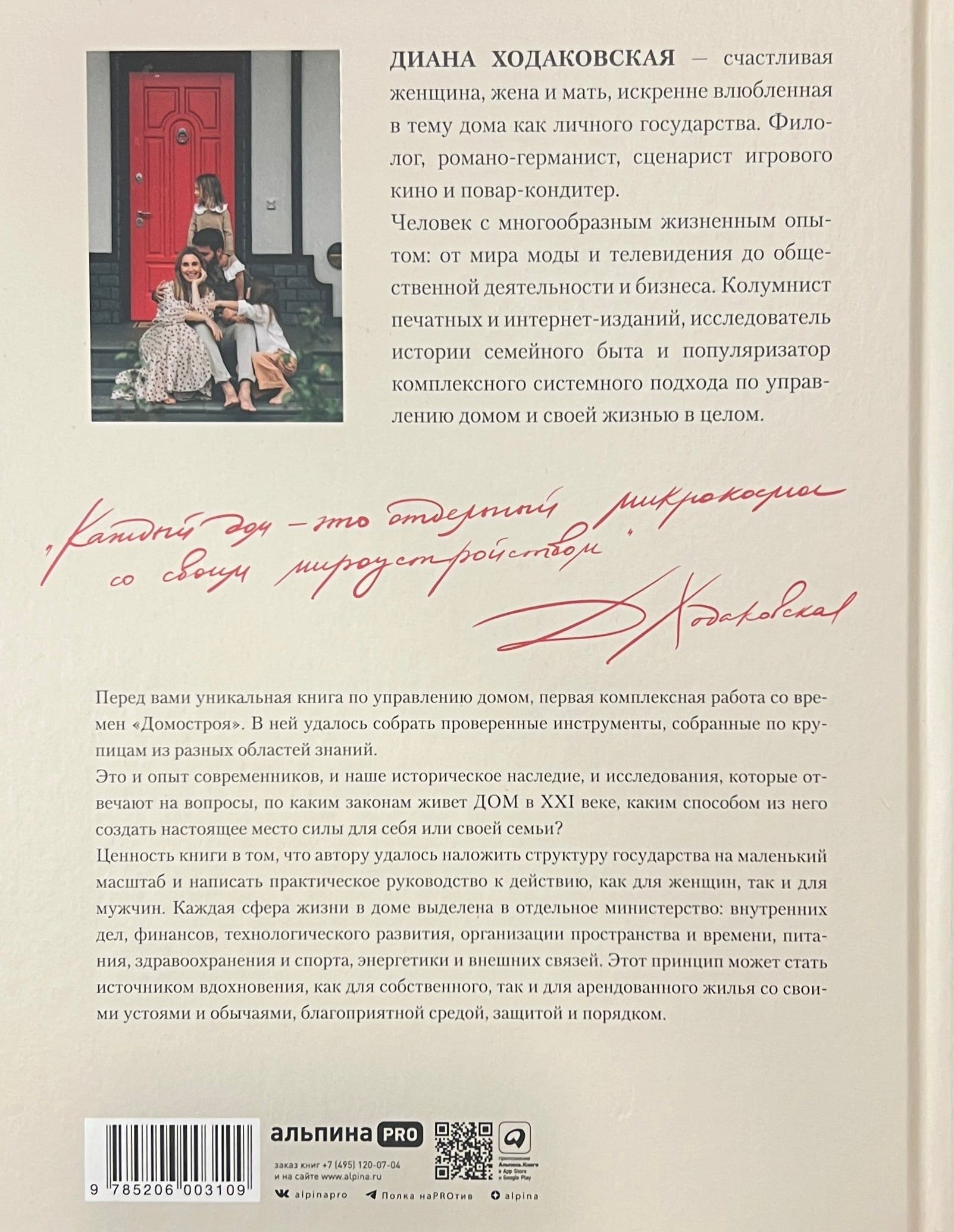 «Дом как маленькое государство» — первая комплексная книга по управлению домом, объединяющая проверенные временем инструменты из различных областей знания. Диана Ходаковская рассматривает сферы жизни аналогично государственному устройству, представляя их как отдельные министерства — от министерства внутренних дел и финансов до министерства питания и энергетики.