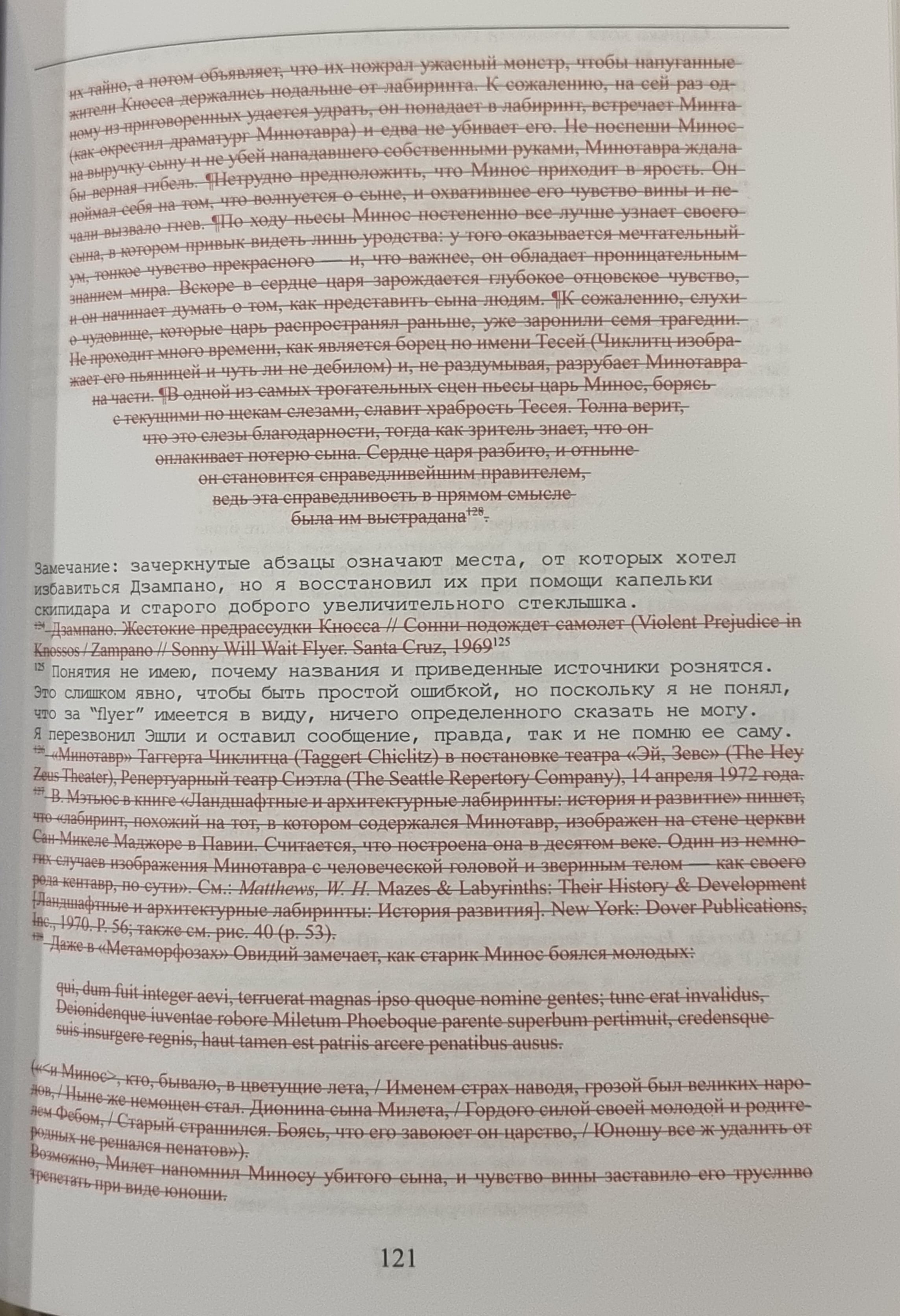 - Слово дом выделено синим; минотавр и все зачеркнутые фрагменты - красным.