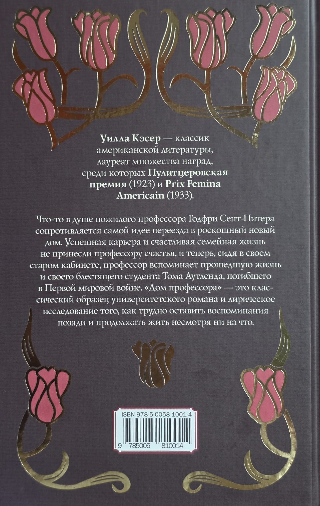 Что-то в душе пожилого профессора Годфри Сент-Питера сопротивляется самой идее переезда в роскошный новый дом. Успешная карьера и счастливая семейная жизнь не принесли профессору счастья, и теперь, сидя в своем старом кабинете, профессор вспоминает прошедшую жизнь и своего блестящего студента Тома Аутленда, погибшего в Первой мировой войне. «Дом профессора» - это классический образец университетского романа и лирическое исследование того, как трудно оставить воспоминания позади и продолжать жить несмотря ни на что.