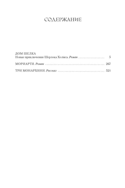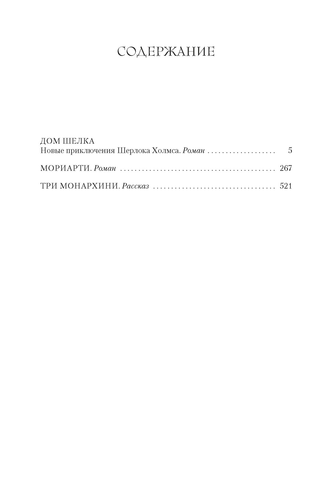 В карьере великого сыщика было дело, связанное с такими чудовищными и скандальными событиями, что написать о нем Ватсон, неизменный рассказчик увлекательнейших историй о своем гениальном друге, решился не скоро. Он тщательно упаковал эти записки, отправил на хранение в надежное место и завещал открыть пакет не ранее, чем через сто лет, потому что спрятанная в нем тайна под названием «Дом шелка» угрожала подорвать все устои общества... Спустя три года после выхода «Дома шелка» Энтони Горовиц вернулся в мир великого сыщика. После того как профессор Мориарти исчез в бурных водах Рейхенбахского водопада, в преступном мире образовалась «вакансия». Среди многочисленных претендентов на это место возникает поистине зловещая фигура. Детективному агенту из Нью-Йорка и инспектору Скотленд-Ярда — преданному поклоннику Шерлока Холмса — предстоит проложить путь через самые темные уголки столицы Англии, от элегантных площадей Мейфэра до причалов и закоулков лондонских доков, в погоне за тем, кто решительно заявляет о своих правах в качестве преемника Мориарти... Список расследований Холмса продолжает рассказ «Три монархини», в котором повествование снова ведется от лица доктора Ватсона. Итак, игра начинается...