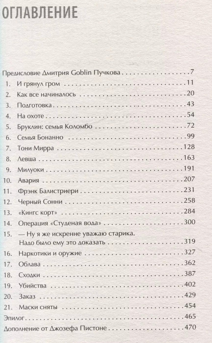 Агент ФБР Джозеф Д. Пистоне, изображающий из себя преступника по имени Донни Браско, провел самую дерзкую операцию в истории ФБР, работая под прикрытием шесть лет, чтобы проникнуть в самые закрытые круги мафии. Теперь его незабываемый рассказ оживляет весь мафиозный мир - их кодекс чести и предательство, их жен, подруг и любовниц, их расточительные траты и грязные дела. Джозеф Пистоне раскрывает все невероятные аспекты ревниво охраняемого мира, в который он проник, и рисует леденящую кровь картину того, что такое мафия, что они делает и что она означает в современной Америке.