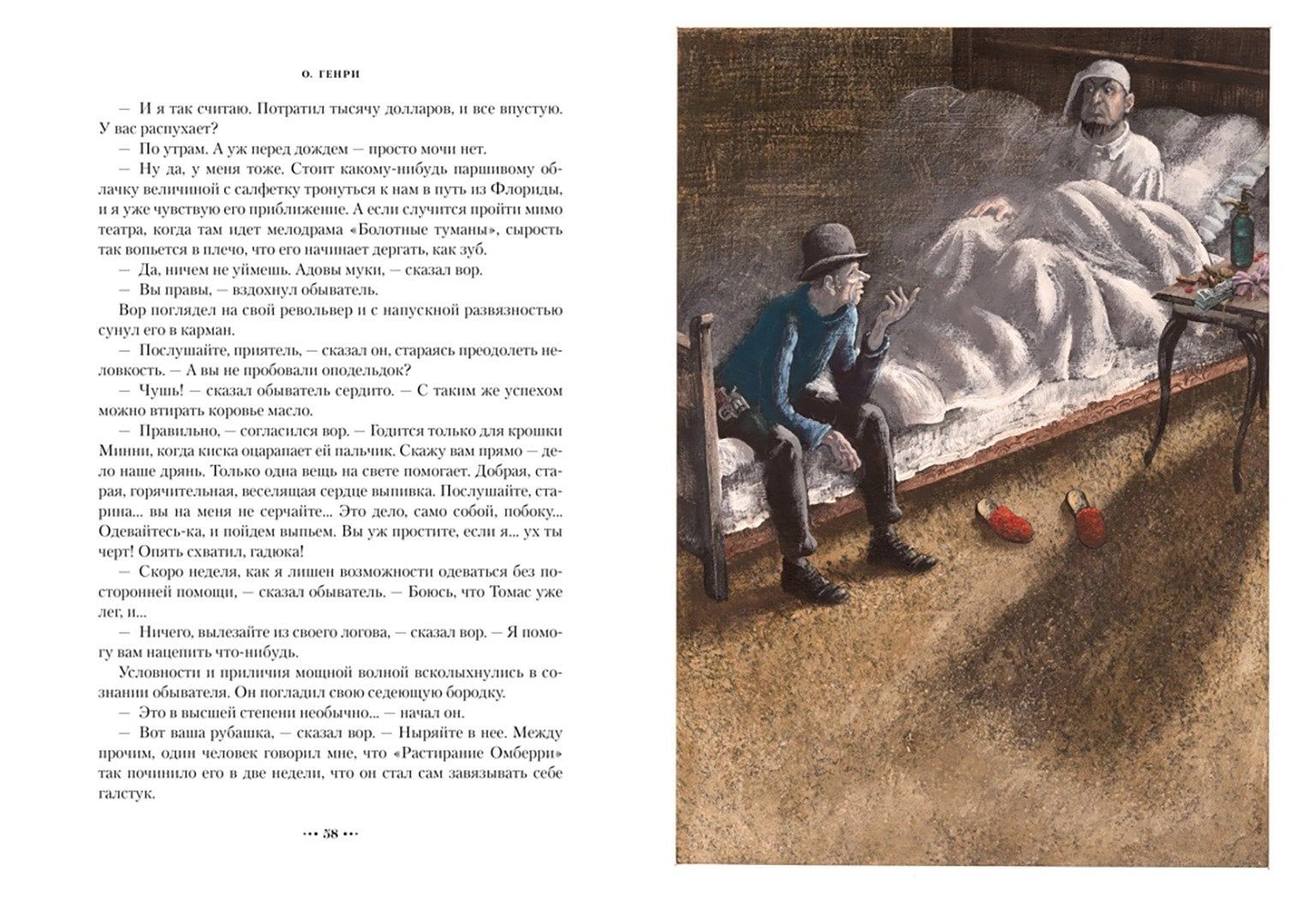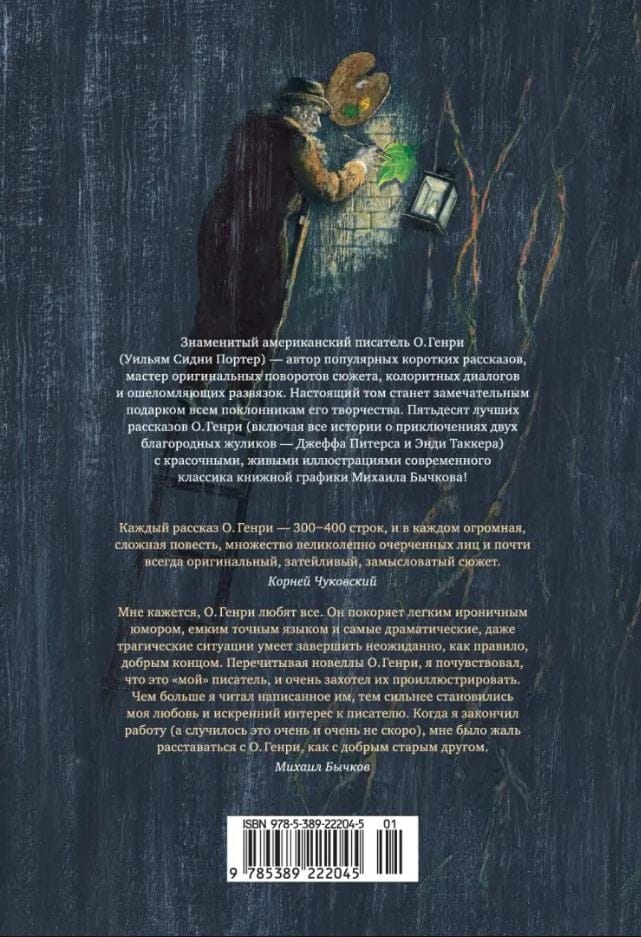Знаменитый американский писатель О. Генри (Уильям Сидни Портер) — автор популярных коротких рассказов, мастер оригинальных поворотов сюжета, колоритных диалогов и ошеломляющих развязок. Творческое наследие писателя составляют около трехсот новелл, представляющих собой нечто вроде юмористической энциклопедии американской жизни начала ХХ века. Впрочем, зарисовки О. Генри как нельзя лучше отвечают и тому, что мы наблюдаем в современной жизни. Необыкновенно занимательные и остроумные, рассказы О. Генри по-прежнему живая классика... Настоящий том станет замечательным подарком всем поклонникам творчества писателя. Пятьдесят лучших рассказов О. Генри (включая все истории о приключениях двух благородных жуликов — Джеффа Питерса и Энди Таккера) с красочными, живыми иллюстрациями современного классика книжной графики Михаила Бычкова.