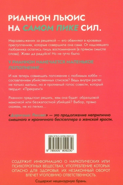 Рианнон Льюис на самом пике сил. Мерзавец-жених за решеткой - его обвиняют в кровавых преступлениях, которые совершила она сама. От надоевшего любовника остались лишь воспоминания (в прямом смысле слова). Живи да радуйся! Но не тут-то было. У Рианнон намечается маленькое пополнение… И как теперь совмещать положение с любимым хобби - составлением убийственных списков? Ведь внутри растет не только малыш, но и противный голос совести, который твердит: «Прекрати!» Рианнон предстоит решить, кем она будет: образцовой мамочкой или безжалостной убийцей? Выбор, прямо скажем, не из легких…
