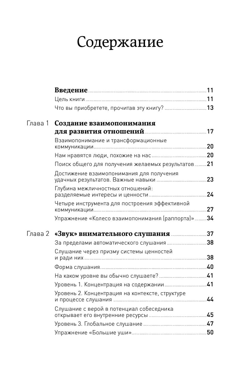 Авторы рассказывают о том, как создать взаимопонимание и правильный настрой во время беседы, как освоить навыки слушания, как задавать открытые вопросы и правильно интерпретировать реакцию собеседника, как овладеть искусством концентрации.